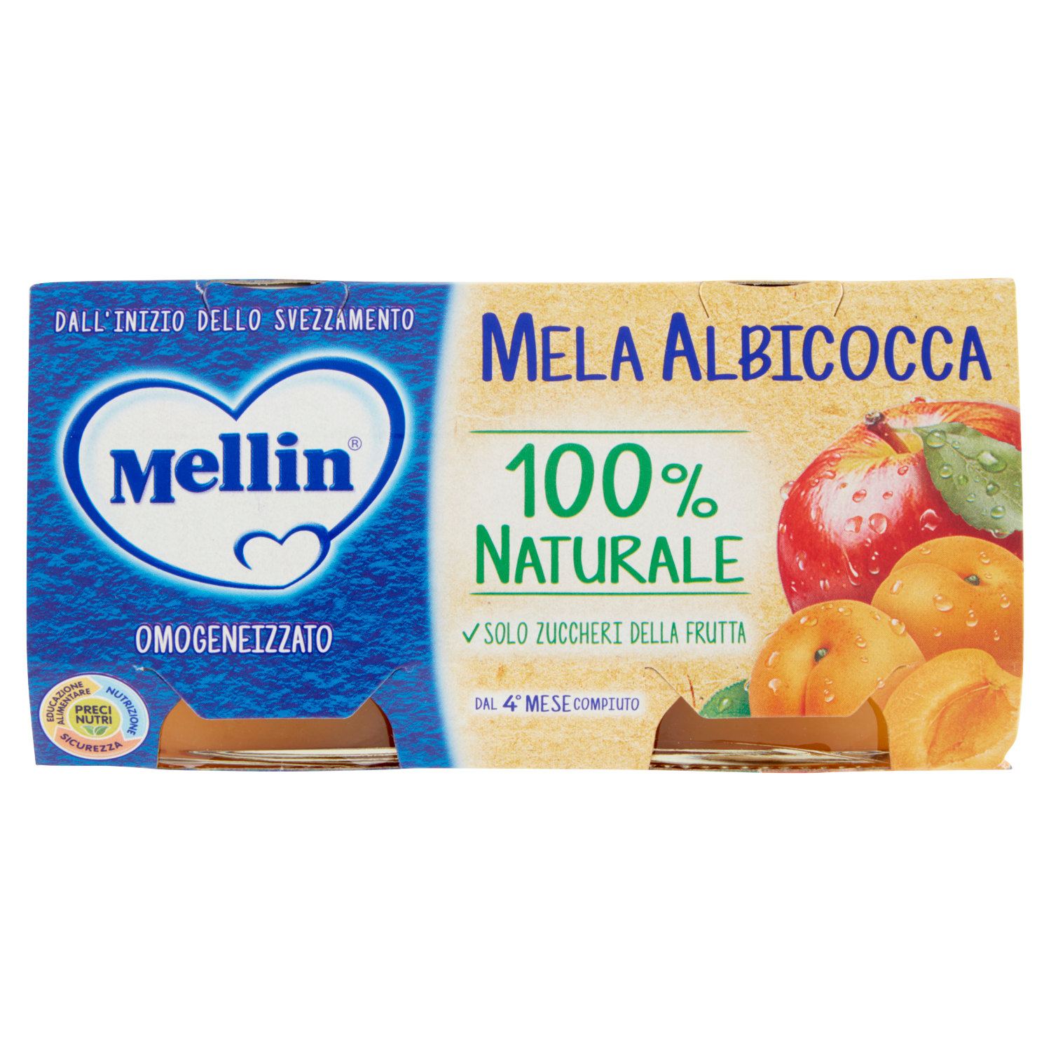 Alimento per la prima infanzia. Omogeneizzato frutta. Indicato a partire dal 4° mese compiuto, salvo diverse indicazioni del PediatraDichiarazione marketing relativa al prodotto specifico