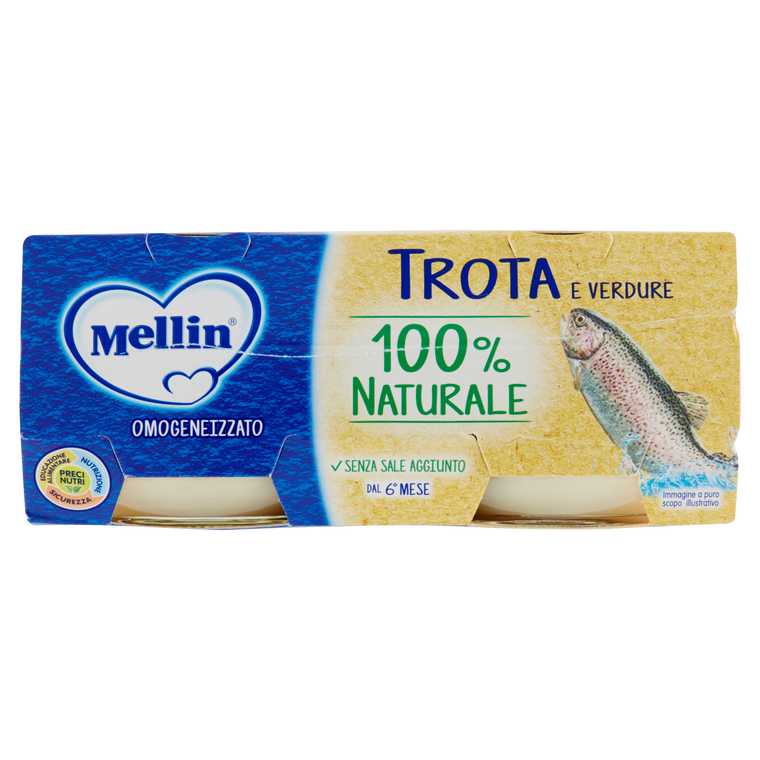 Alimento per la prima infanzia omogeneizzato con filetto di trota e verdure
