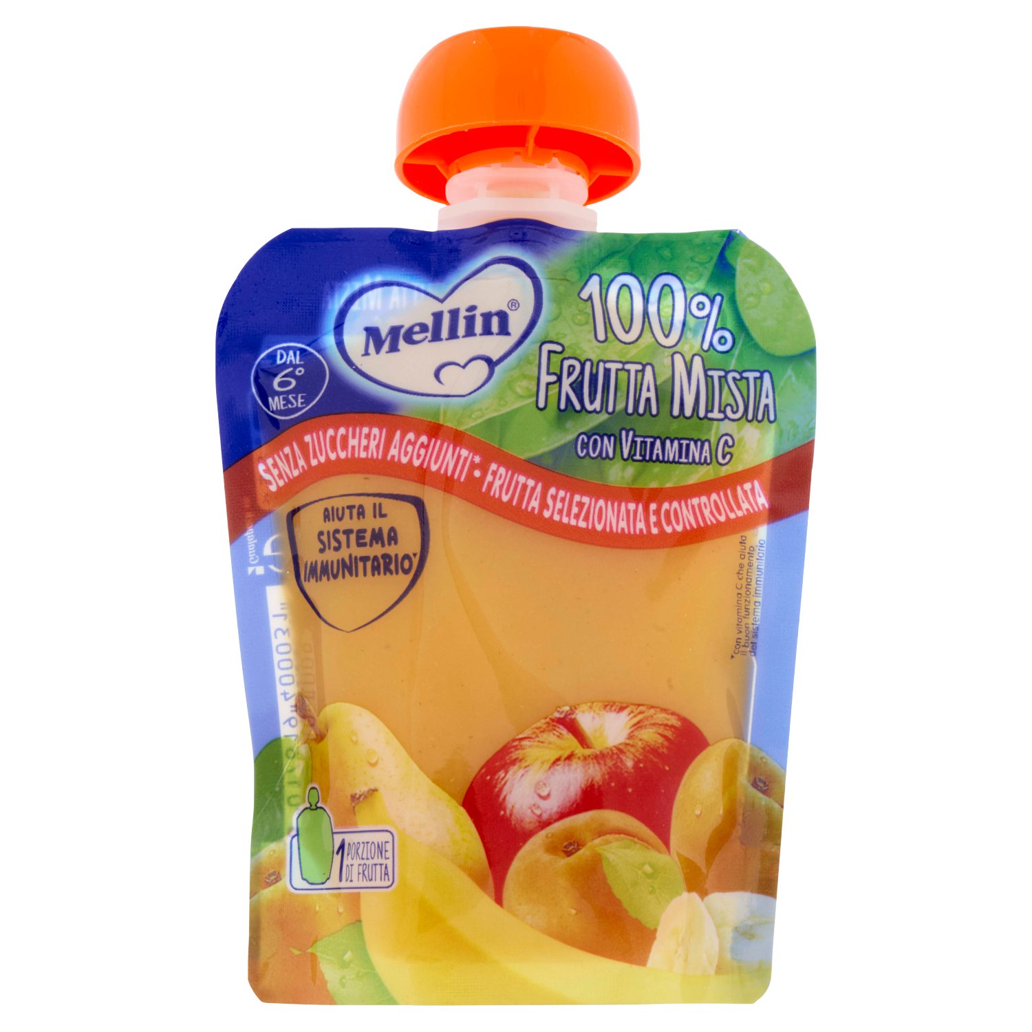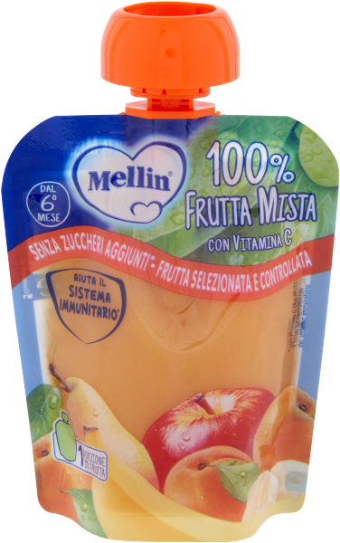 Alimento per la prima infanzia. Merenda pastorizzata a base di puree di frutta. Prodotto indicato a partire dal 6° mese compiuto, all'interno di un'alimentazione varia, sentendo il parere del PediatraDichiarazione marketing relativa al prodotto specifico