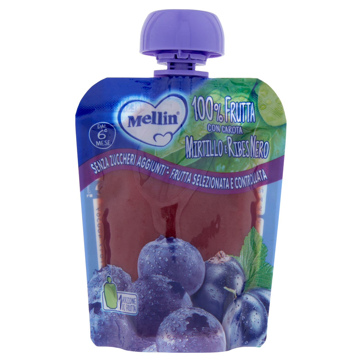 Alimento per la prima infanzia. Merenda pastorizzata a base di puree di frutta. Prodotto indicato a partire dal 6° mese compiuto, all'interno di un'alimentazione varia, sentendo il parere del PediatraDichiarazione marketing relativa al prodotto specifico