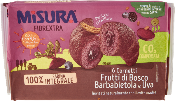 Farcitura alla frutta e verdura 26% (sciroppo di glucosio-fruttosio; zucchero; succo di barbabietola da concentrato 6,5%; puree di frutti di bosco 6,5%: ribes rosso, mora, mirtillo; fibra di cicoria 4,5%; succo d'uva 2%; fibra di mela 0,3%; gelificante: pectina; acidificante: acido citrico; aroma naturale)