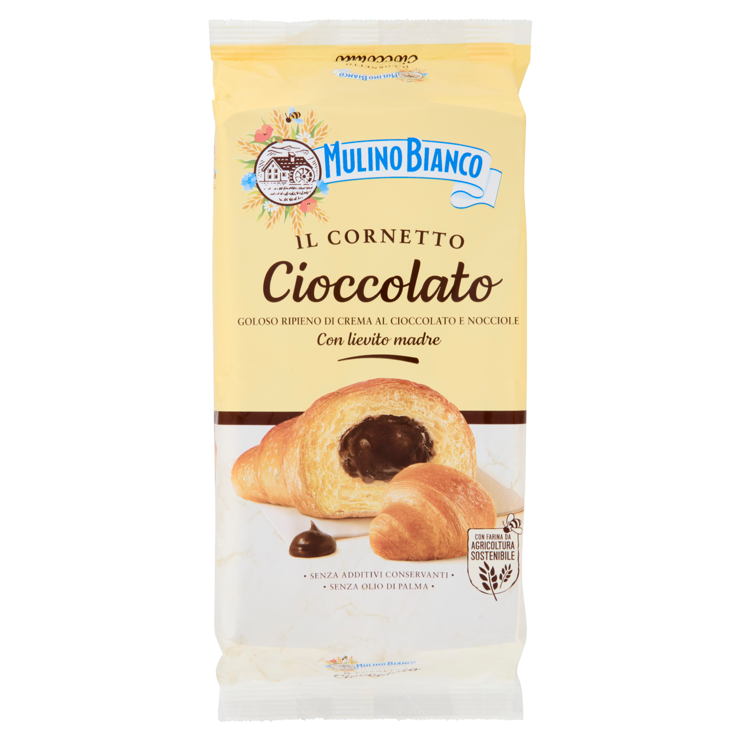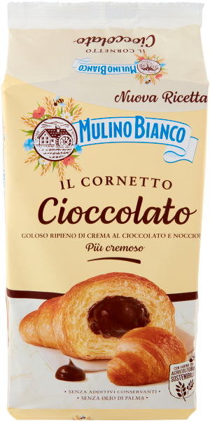 Crema al cioccolato e nocciole 24,6%* [zucchero, sciroppo di glucosio, acqua, burro di cacao, latte scremato in polvere, olio di girasole, nocciole 1,6%*, cioccolato 1,5%* (pasta di cacao, zucchero, emulsionante: lecitina di soia), cacao, amido, aroma (latte, soia), emulsionanti: mono e digliceridi degli acidi grassi, sale]