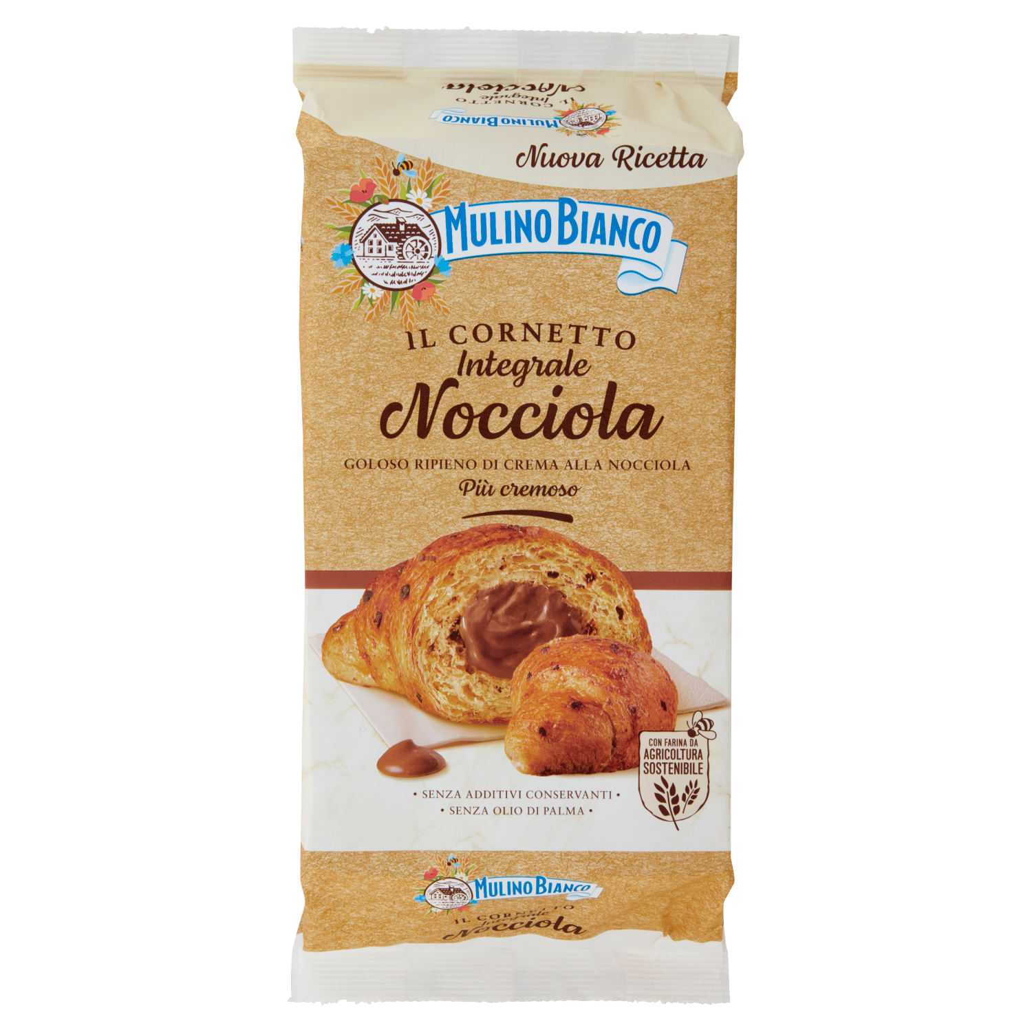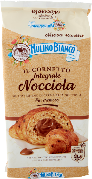 Crema alle nocciole 24,6%* [zucchero, acqua, sciroppo di glucosio, nocciole 3%*, burro di cacao, olio di girasole, latte scremato in polvere, amidi, cacao, emulsionanti: mono e digliceridi degli acidi grassi, sale, aroma (nocciole)]