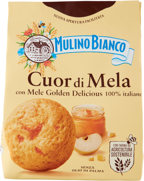 Confettura di mela 23,2%* (purea di mele 18%*, sciroppo di glucosio-fruttosio, destrosio, succo di mela 2,8%*, zucchero, gelificante: pectina, correttore di acidità: acido citrico)