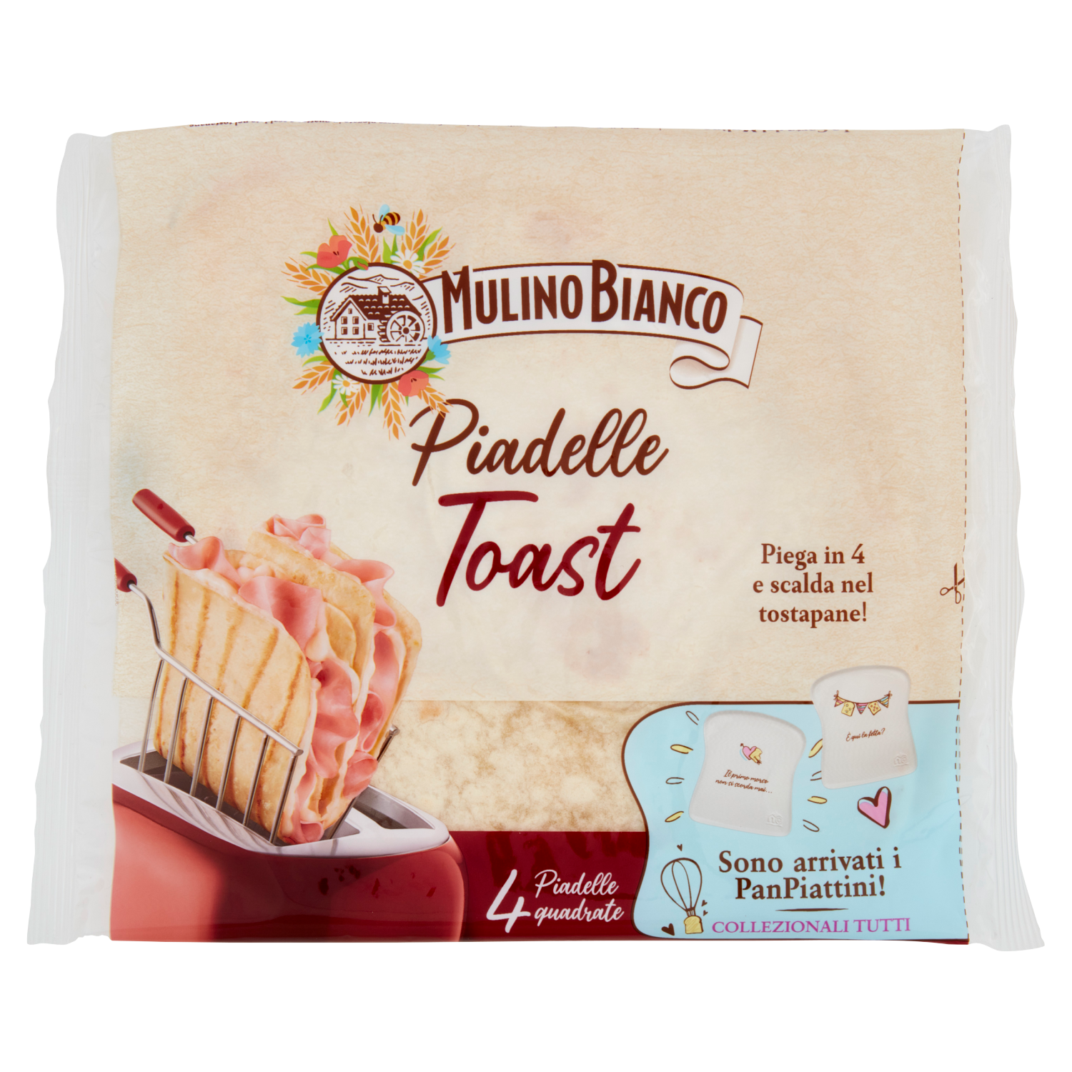 Piadelle Toast, quadrate, sottili e morbide, perfette per essere piegate in quattro e scaldate nel tostapane.
