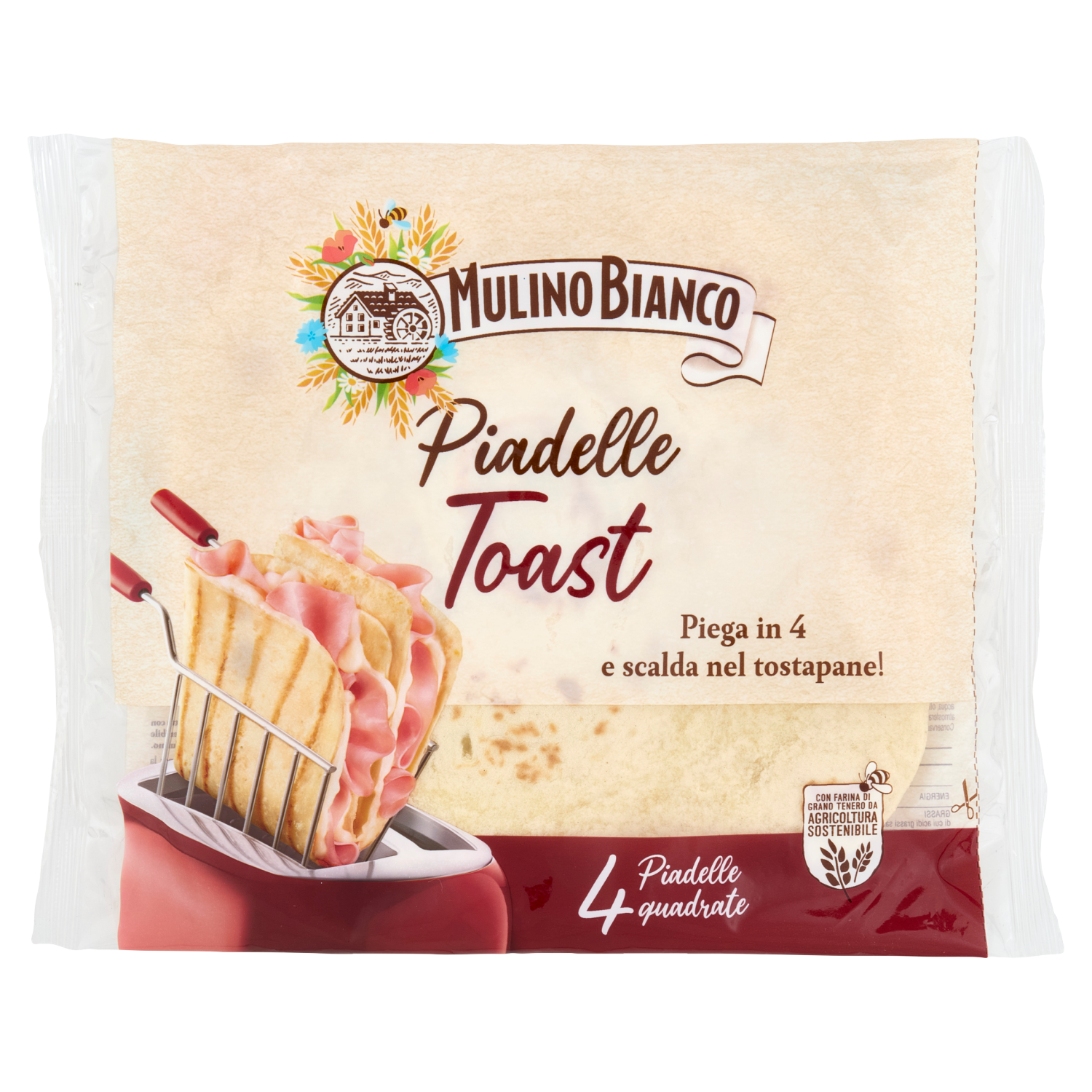 Ogni Piadella Toast di questa confezione è fatta con farina di grano tenero da Agricoltura Sostenibile rispettando le 10 regole della Carta del Mulino.