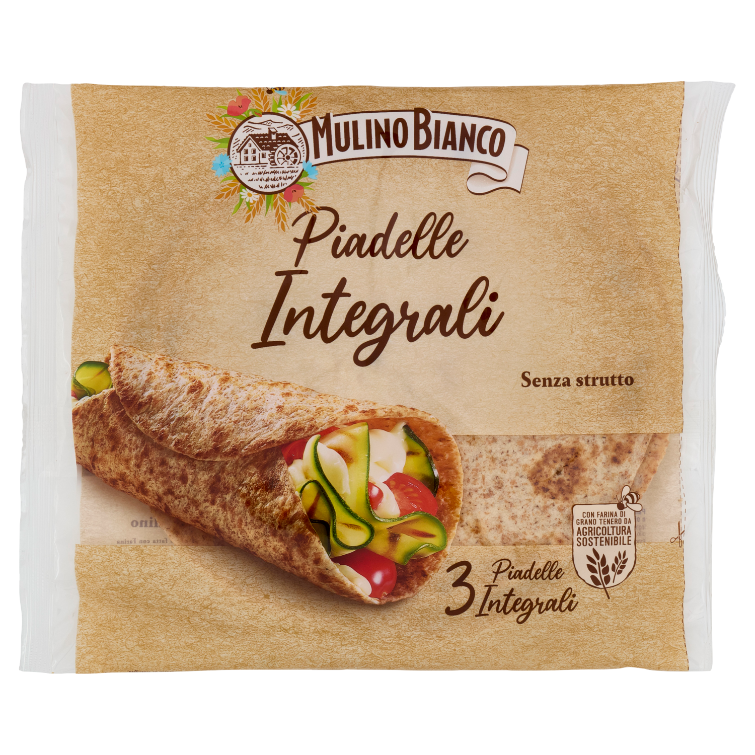 Ogni Piadella di questa confezione è fatta con Farina di grano tenero da Agricoltura Sostenibile rispettando le 10 regole della Carta del Mulino.