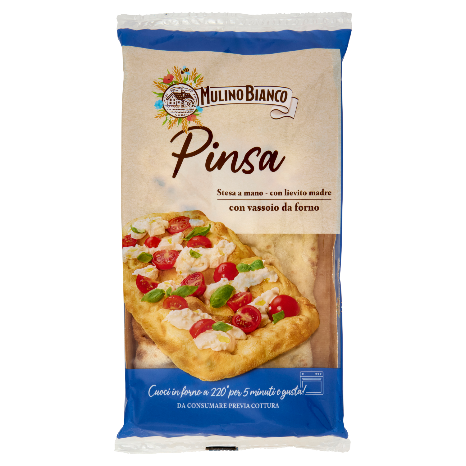 1. Cuoci la Pinsa nel suo vassoio per 5 minuti a 220°C forno ventilato