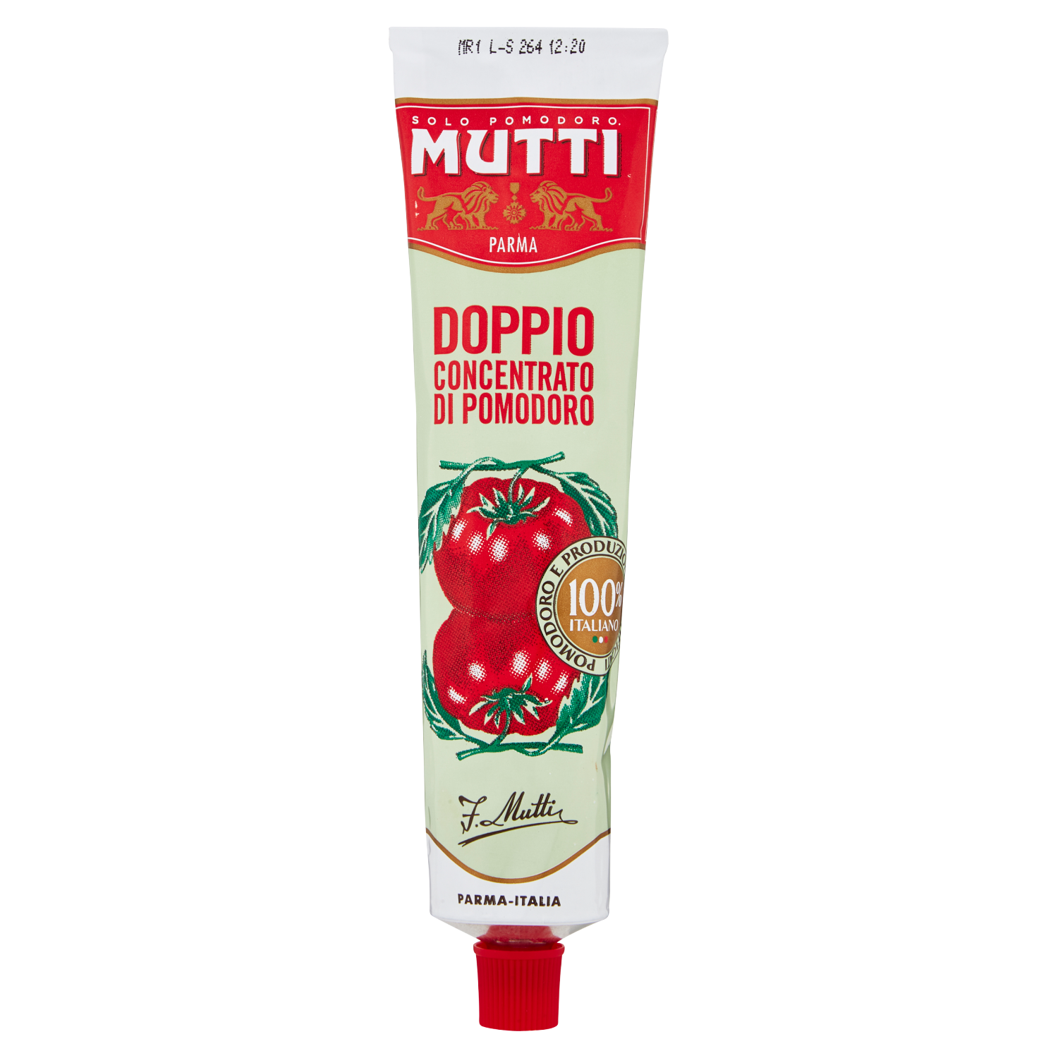 Il doppio concentrato di pomodoro Mutti si ottiene evaporando, secondo una ricetta antica e naturale, il succo di pomodori rossi e maturi. Dona ad ogni piatto colore e quel sapore autentico di una volta. In questo tubetto ci sono circa 0,7 kg di pomodori freschi.