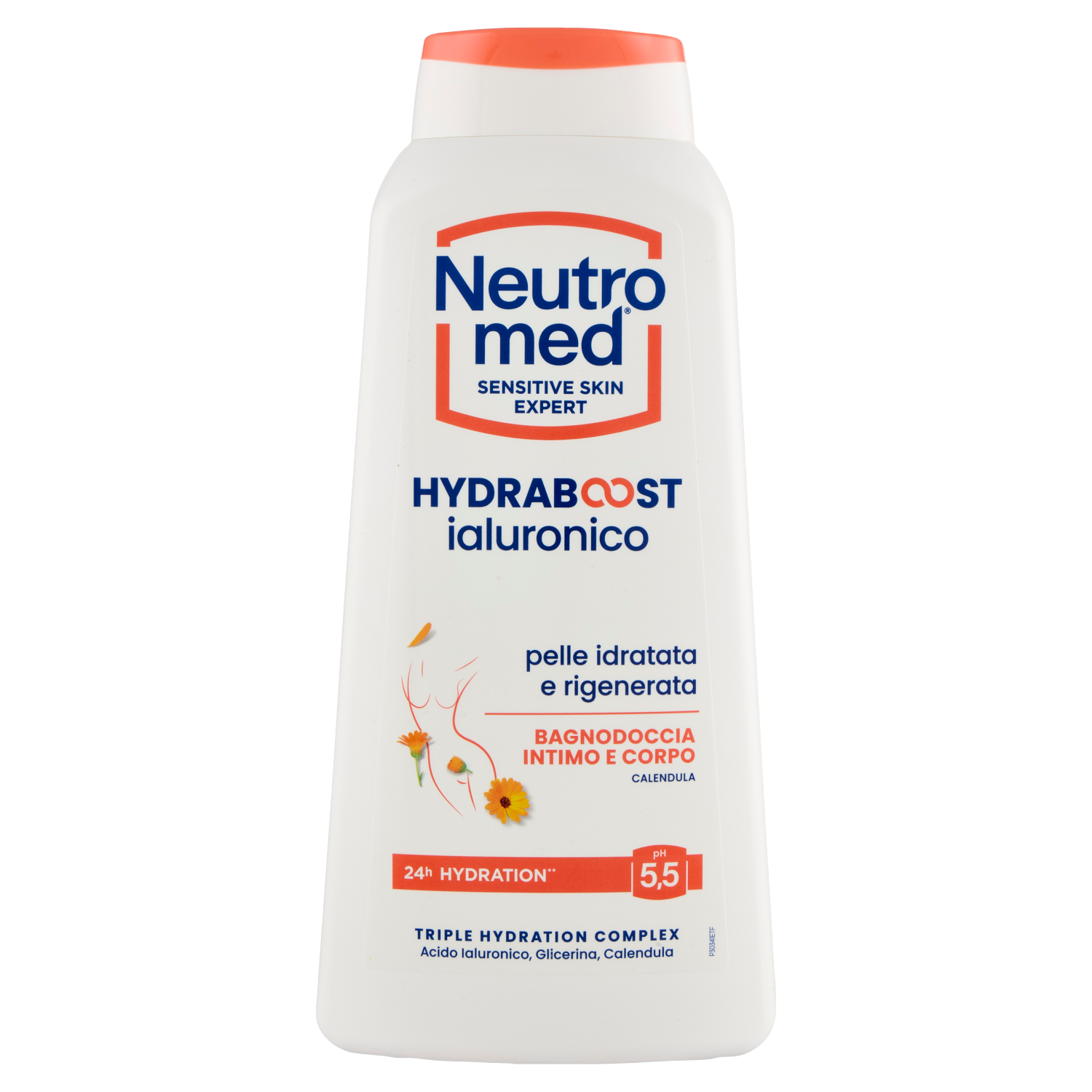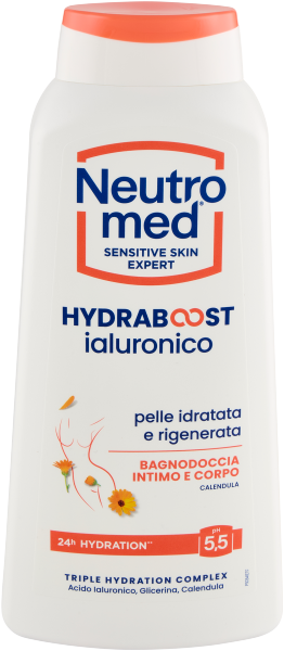 Neutromed Hydraboost Ialuronico Intimo e Corpo garantisce una pelle Idratata e Rigenerata per 24 Ore grazie alla sua speciale formula con pH 5.5 e arricchita con: