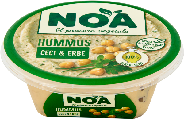 Crema vegetale spalmabile di ceci con crema di sesamo, olio di oliva e erbe aromatiche
