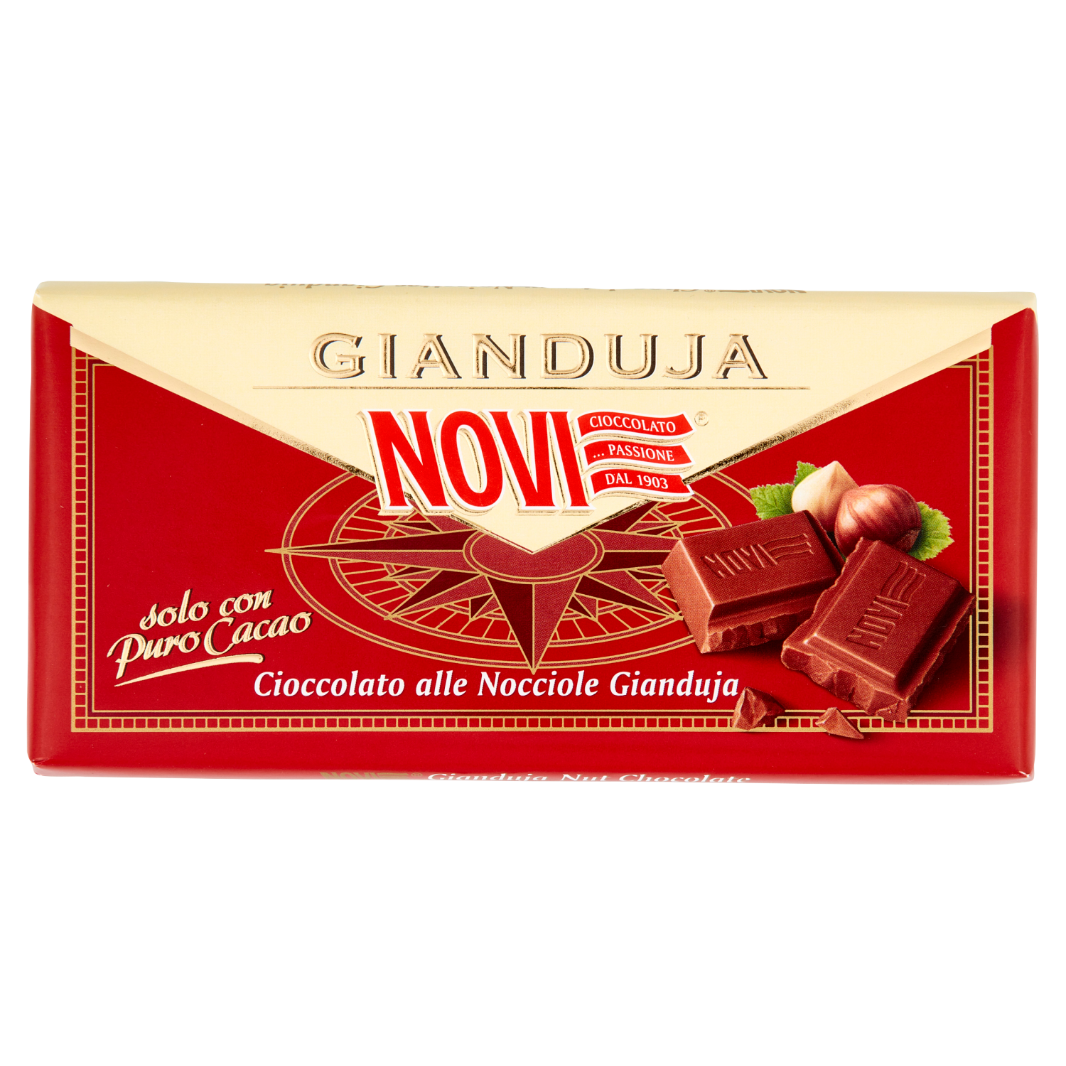 Novi, il Grande Cioccolato Italiano, con i migliori semi di cacao selezionati all'origine e torrefatti nel proprio stabilimento, uniti alle pregiate nocciole delle nostre colline, produce a Novi L. in Piemonte il Cioccolato Gianduja e ne assicura la squisita bontà.