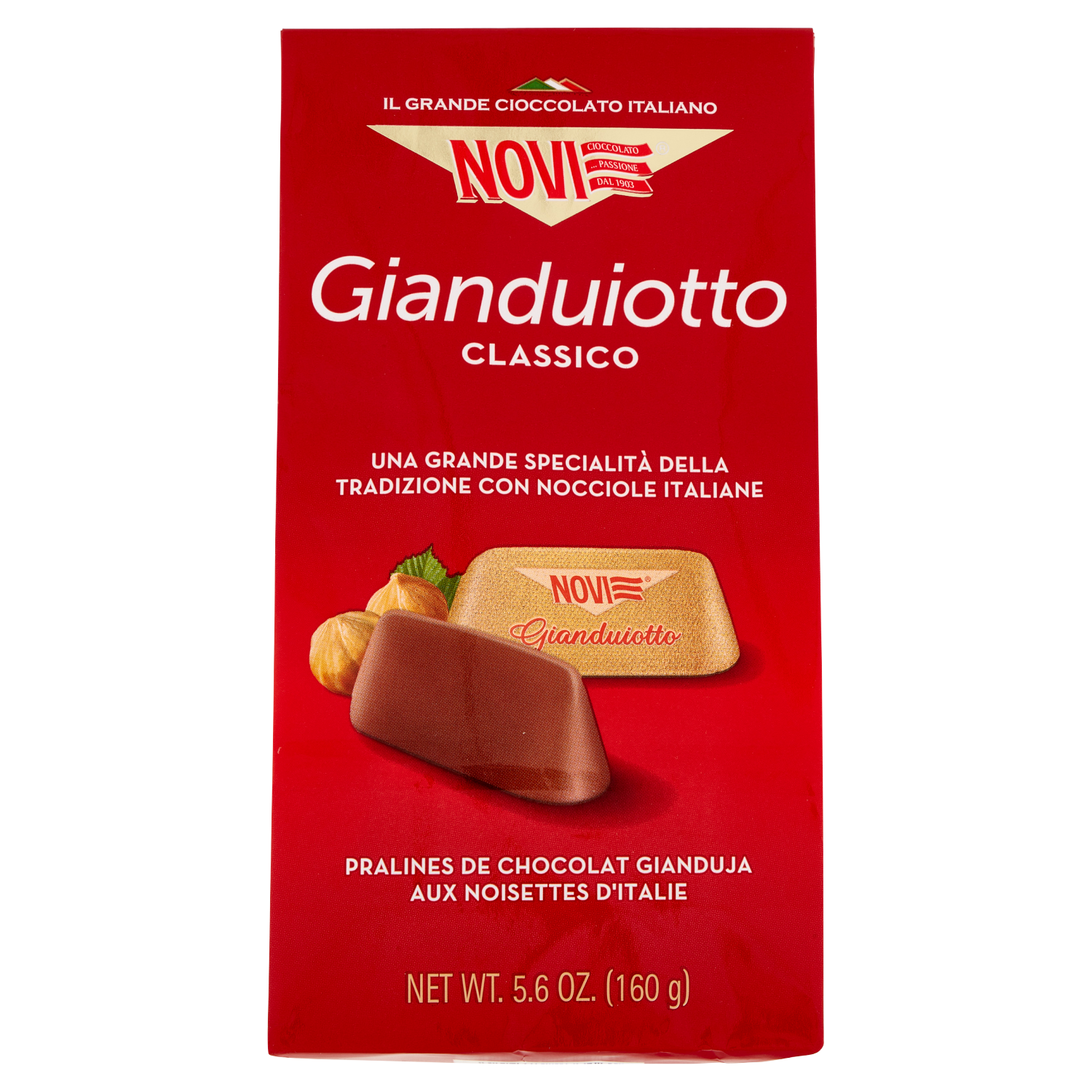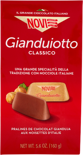 Il Gianduiotto nasce a metà '800 in Piemonte ed è la sua più illustre specialità dolciaria. Novi, come vuole la tradizione, utilizza per il suo Gianduiotto solo pregiate nocciole italiane selezionate.