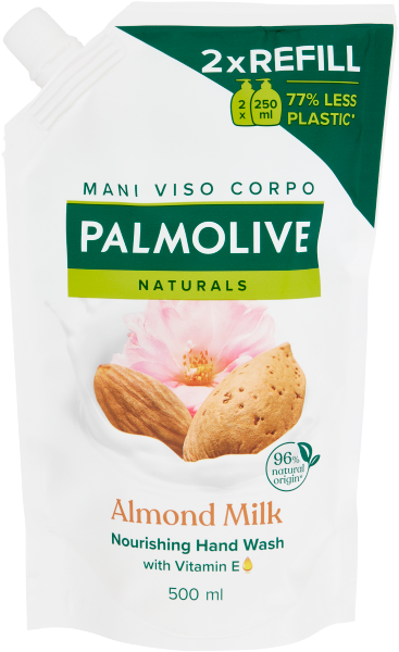 * This refill uses 77% less plastic per ml of product than a Palmolive liquid hand soap bottle (300ml) to reduce plastic waste in the environment