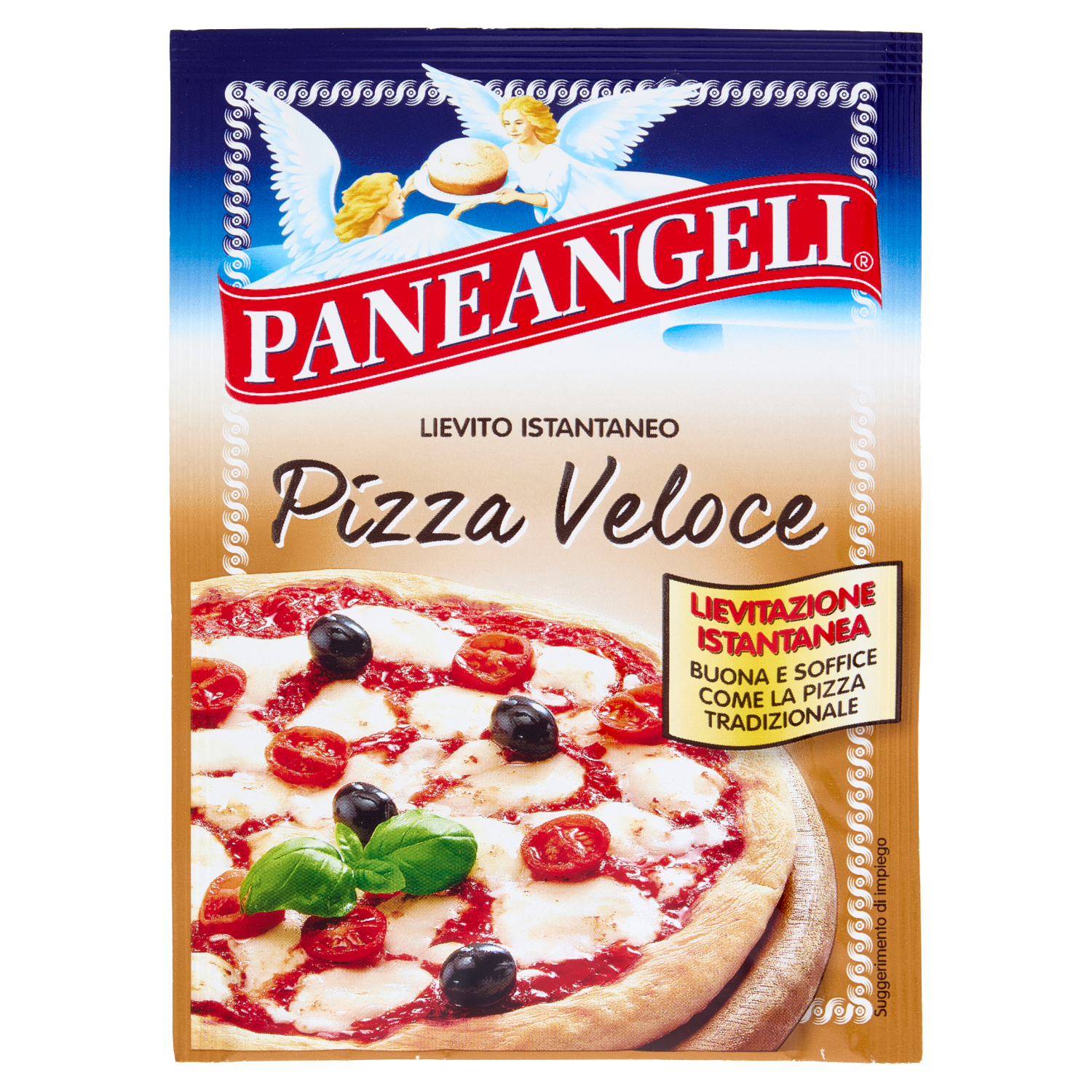 Per l'impasto: 400 g farina - 1 busta di Lievito istantaneo Pizza Veloce Paneangeli - 10 g zucchero - 1 cucchiaino colmo di sale (5 g circa) - 3 cucchiai di olio d'oliva - 240 ml acqua temperatura ambiente. Per farcire: olio di oliva per la teglia - 400 g polpa di pomodoro - 250 g mozzarella a dadini - sale - basilico tritato. Setaccia la farina in una terrina larga, mescola il Lievito istantaneo, quindi aggiungi sale, zucchero, olio e un po' per volta l'acqua amalgamando il tutto con una forchetta. Lavora velocemente l'impasto con le mani, finché diventa ben amalgamato, stendilo con un matterello in una sfoglia grande quanto la teglia del forno e trasferiscila sulla teglia unta con 2 cucchiai d'olio, distribuisci la polpa di pomodoro, la mozzarella, sale a piacere. Cuoci per 15-20 minuti nella parte media del forno preriscaldato (elettrico: 220°C, ventilato: 190°C, a gas parte alta: 230°C). Prima di servire cospargi il basilico.