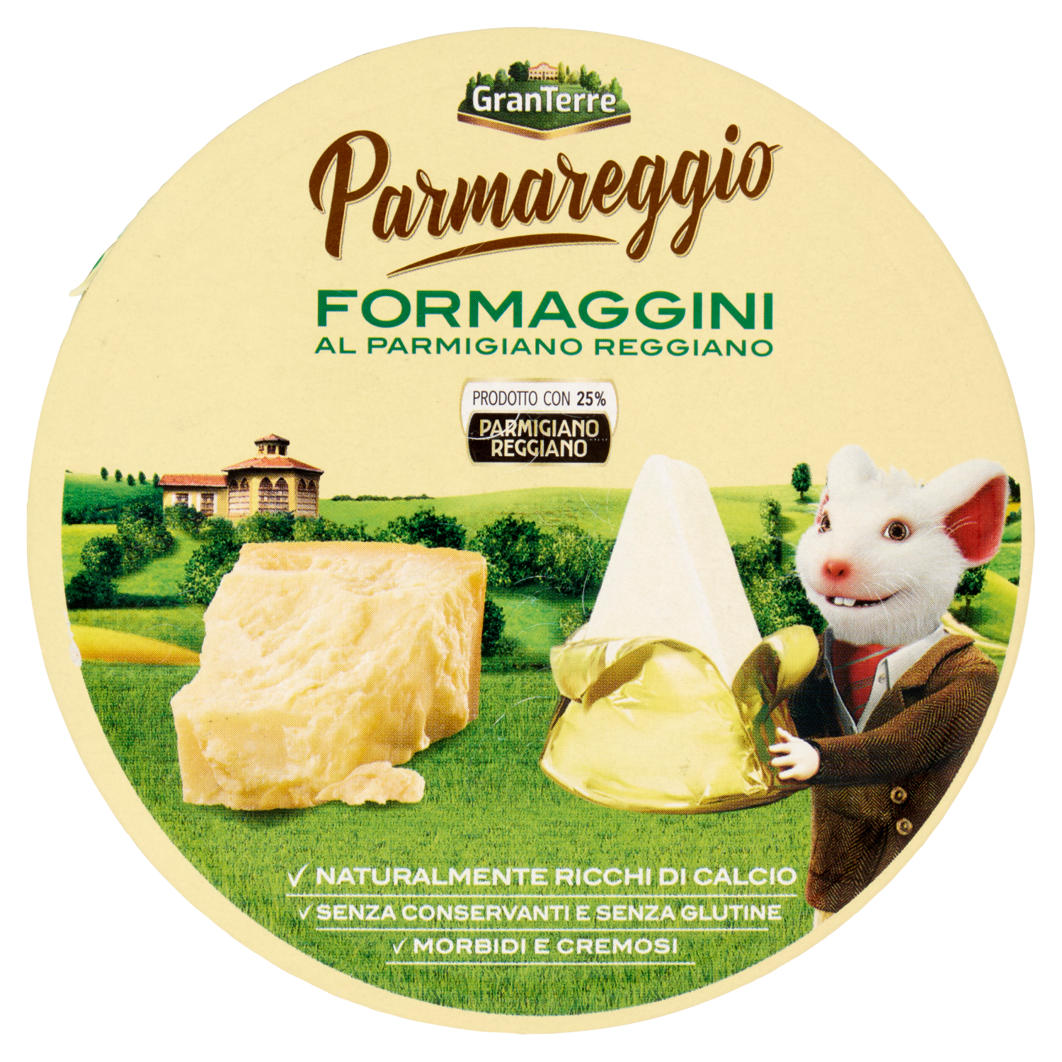 Nell'ambito di una dieta varia ed equilibrata e di uno stile di vita sano, i Formaggini Parmareggio sono ideali anche per il tuo bambino, perchè fatti con Parmigiano Reggiano DOP, naturalmente ricco in calcio, essenziale per lo sviluppo delle ossa. Morbidi e cremosi, dal gusto delicato sono ottimi da sciogliere nelle minestrine e spalmati sul pane per una merenda genuina.Ingredienti