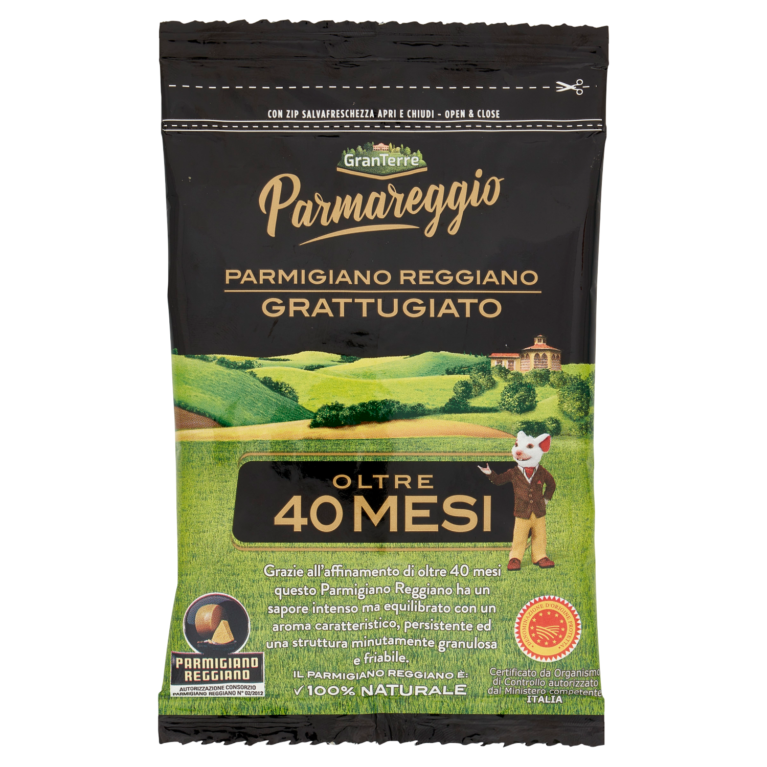 Formaggio Parmigiano Reggiano DOP Grattugiato. Stagionatura oltre 40 mesiDichiarazione marketing relativa al prodotto specifico
