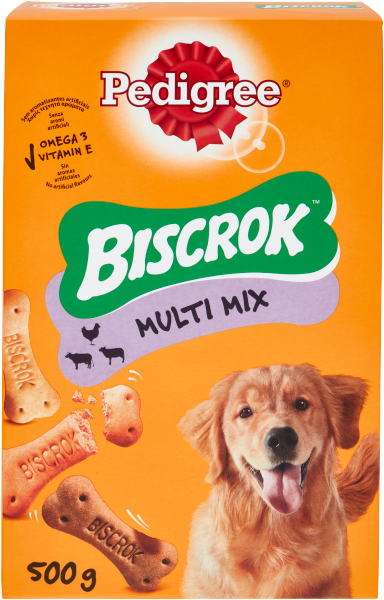 Biscotti croccanti pieni di succulento sapore - Pedigree Biscrok Multi Mix sono cotti alla perfezione in 3 deliziose varietà.