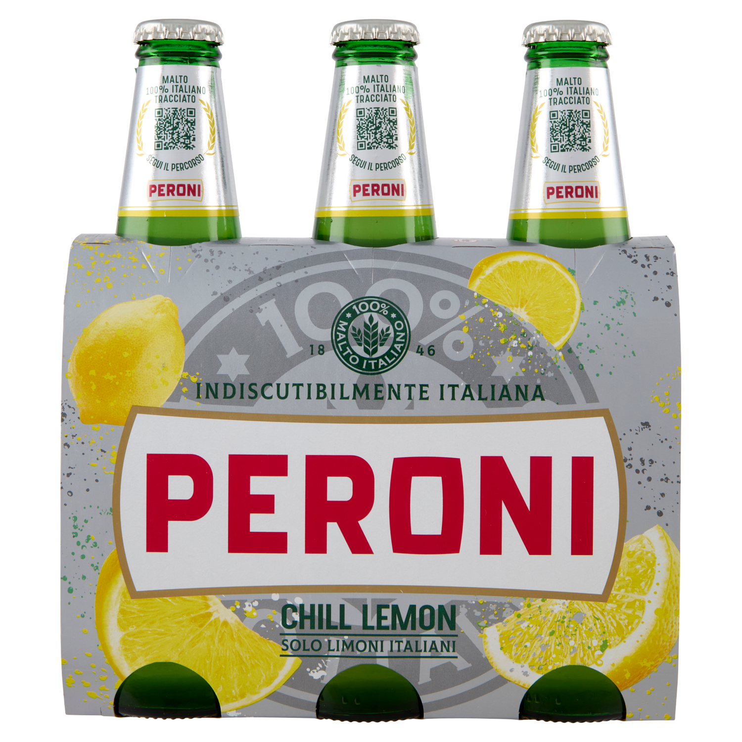 Peroni Chill Lemon è una radler dal cuore italiano perché prodotta con malto e limoni 100% italiani, che le conferiscono un profumo di limoni appena colti ed un gusto naturale per un'esplosione di freschezza e qualità.