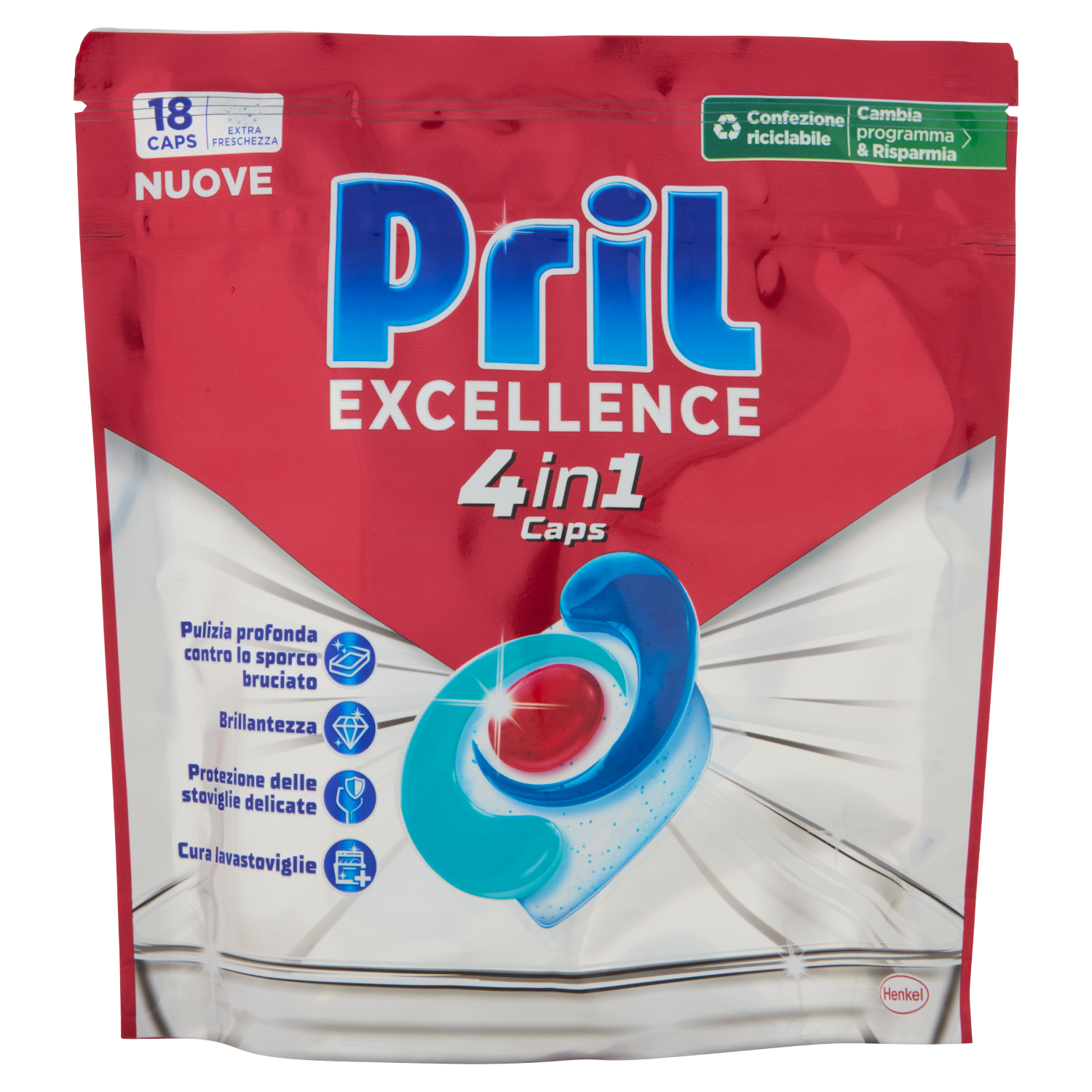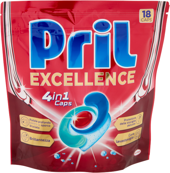 Contiene una potente combinazione di polvere e gel per una pulizia profonda contro lo sporco bruciato anche con cicli brevi ed eco a basse temperature. Pril Excellence 4in1 caps assicura pulizia e brillantezza eccellenti, rispettando le stoviglie delicate e prendendosi cura della lavastoviglie.Ulteriore descrizione