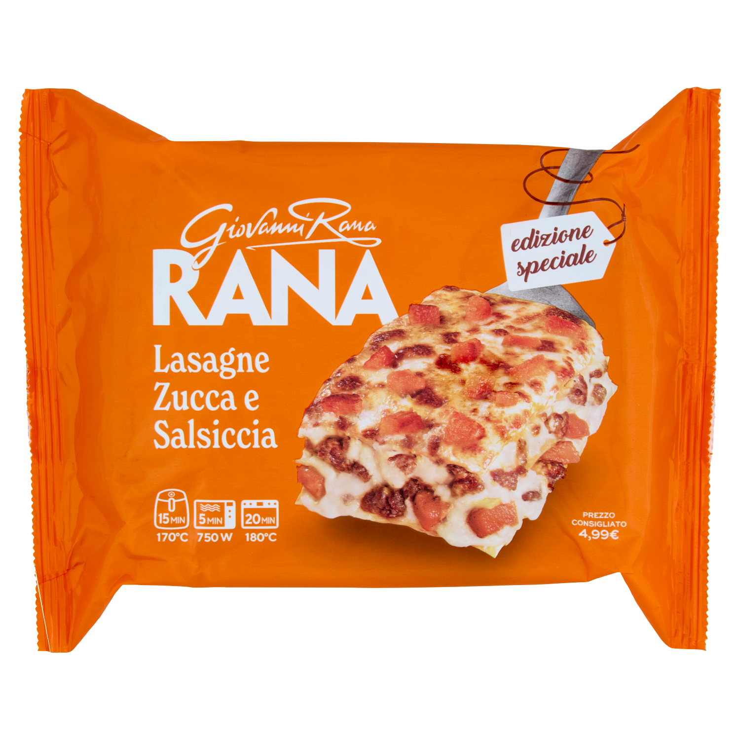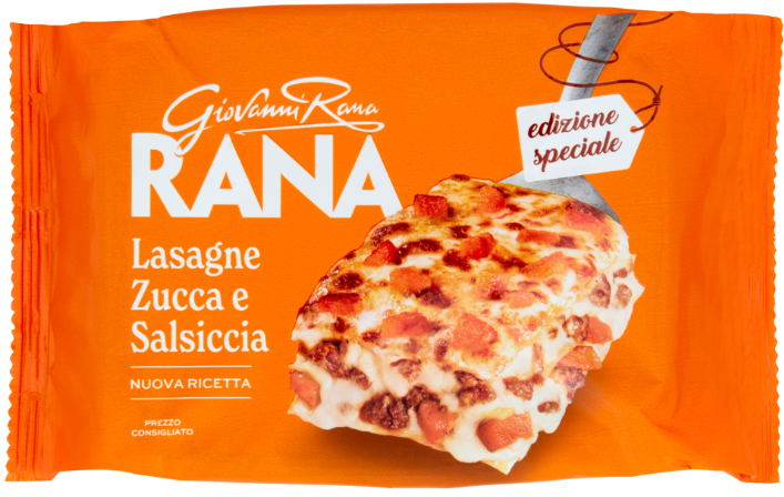 Ripieno a base di salsiccia 21%: salsiccia cotta 33% (carne di suino 90%, olio di girasole, sale, pepe, aglio), ricotta (siero di latte, latte, sale), formaggio mozzarella, latte intero, formaggio mascarpone, crema di latte, formaggio grattugiato, olio di girasole, farina di frumento, sale, amido, fibre vegetali (di patata e frumento), aroma naturale