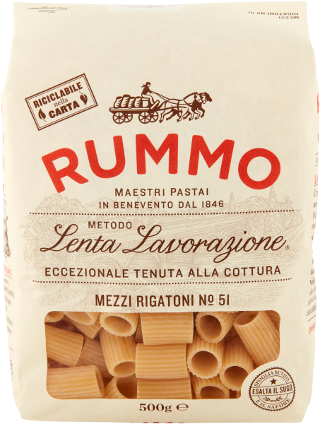 Grazie all'esclusivo Metodo a Lenta Lavorazione e alla cura dei nostri pastai, la Pasta Rummo è certificata per la sua tenuta alla cottura e la qualità delle semole di grano duro utilizzate. Il risultato è una pasta sempre al dente, dal profumo dolce come il grano maturo.