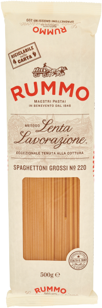 Grazie all'esclusivo Metodo a Lenta Lavorazione e alla cura dei nostri pastai, la Pasta Rummo è certificata per la sua tenuta alla cottura e la qualità delle semole di grano duro utilizzate. Il risultato è una pasta sempre al dente, dal profumo dolce come il grano maturo.
