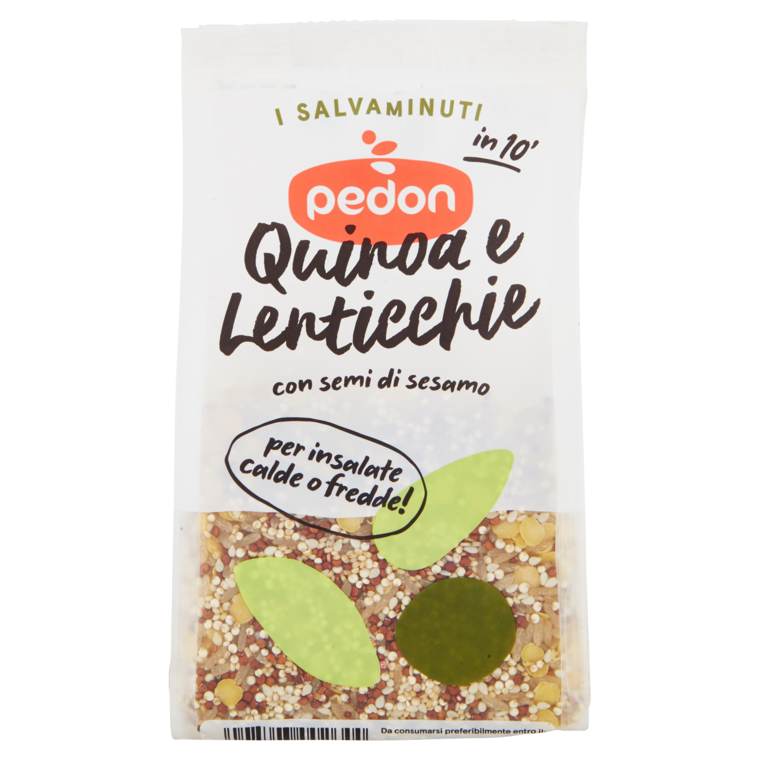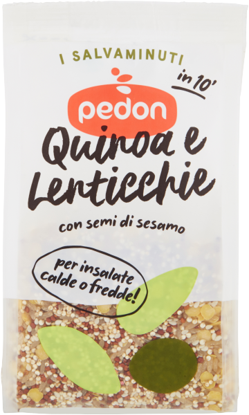 Prepara il mix Quinoa e Lenticchie come indicato sopra e fai raffreddare. Nel frattempo taglia a dadini 1 avocado e 1 papaya. In una padella tosta 50g di mandorle affettate, regolando di sale e di pecorino. Unisci il mix di Quinoa e Lenticchie con l'avocado, la papaya e le mandorle tostate, aggiungendo 50g di mirtilli rossi e 30g di rucola. Servi con un filo d'olio.