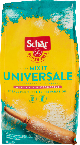 Ingredienti: 420ml di acqua tiepida, 30g di olio, 5g di sale, 500g Schär Mix It! Universale, 10g di lievito secco o 21g di lievito fresco.