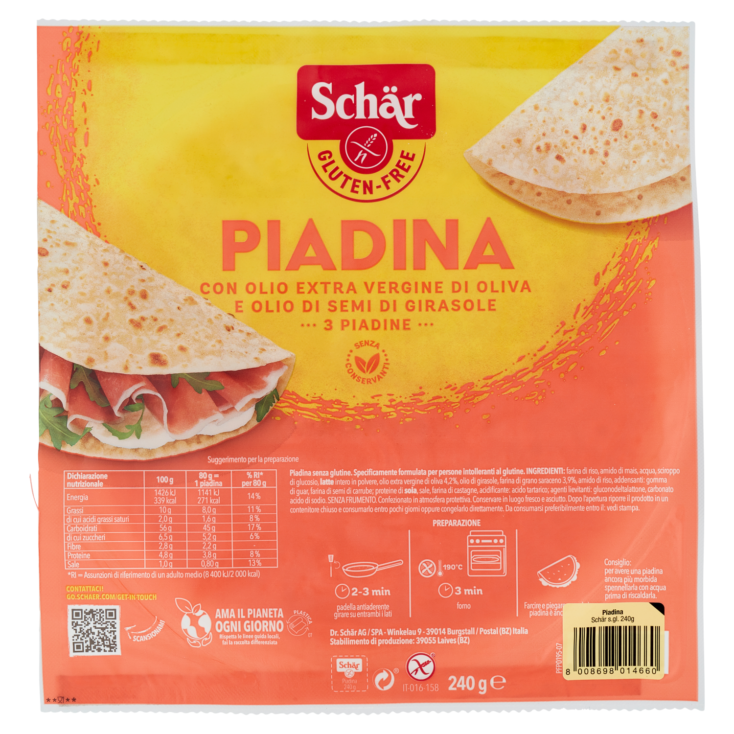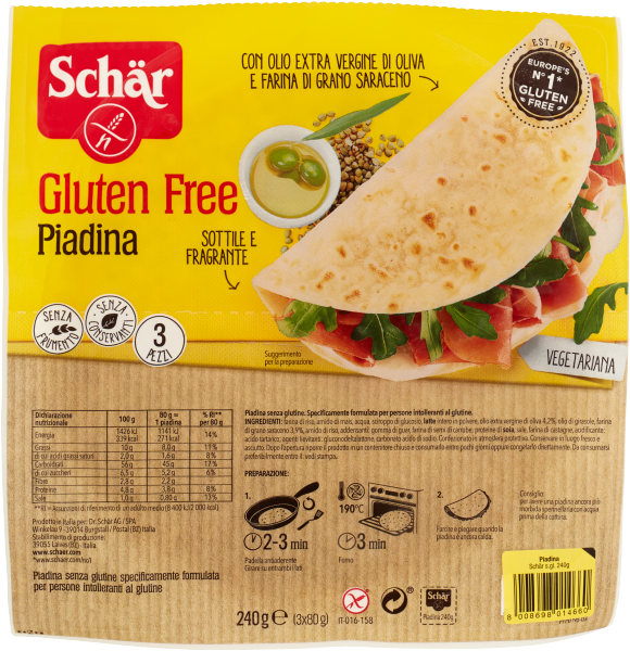 100 g | 80 g = 1 piadina | % RI* per 80 g | |
