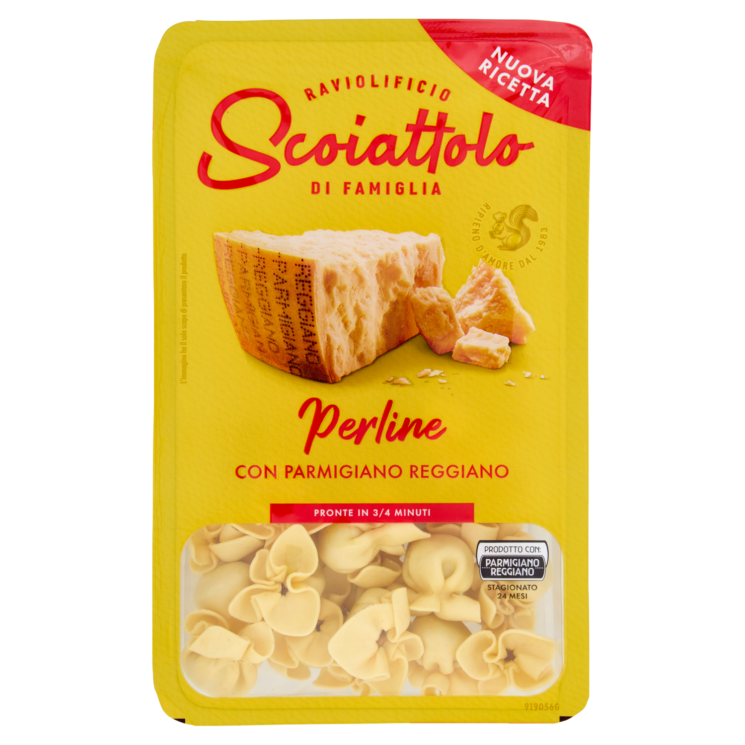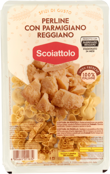 Ripieno 38%: siero di latte reidratato, pangrattato (farina di grano tenero tipo "0", sale, lievito di birra), Parmigiano Reggiano DOP 11% (latte, sale, caglio), siero di latte in polvere, ricotta (siero di latte, crema di latte, sale, correttore di acidità: acido citrico), olio di semi di girasole, fibre vegetali (patata, mais), fiocchi di patate, sale, amido di patata, aroma naturale (contiene latte), estratto di lievito, noce moscata