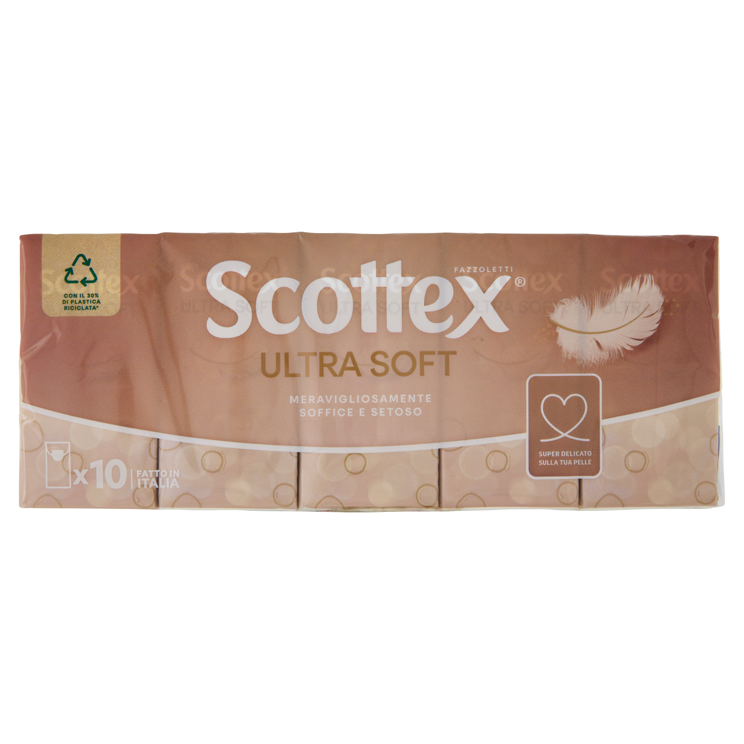 *L'intera confezione contiene il 30% di plastica riciclata e ogni singolo pacchetto di fazzoletti è 100% riciclabile. Consulta le regole del tuo comune di residenza. Questo è l'inizio del nostro viaggio verso un futuro più sostenibile
