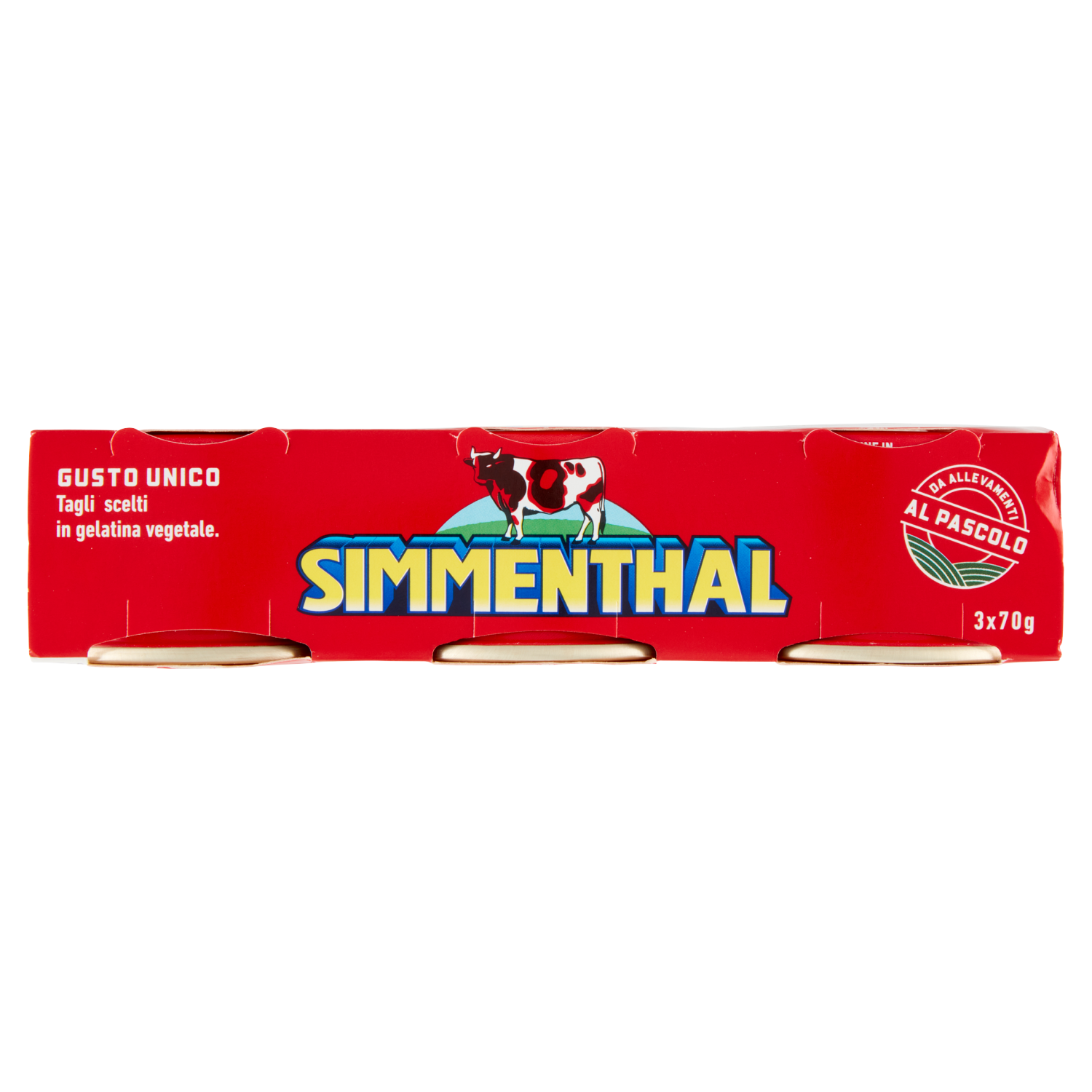 Scaldate la Simmenthal per qualche istante in padella in modo tale che la gelatina, una volta sciolta, insaporisca i pezzetti di carne. Nel frattempo, sbattete in una terrina le uova, regolate di sale e pepe e aggiungete un po' di prezzemolo tritato. Aggiungete un filo d'olio nella padella con la Simmenthal e versate il composto con le uova. Cuocete la frittata.