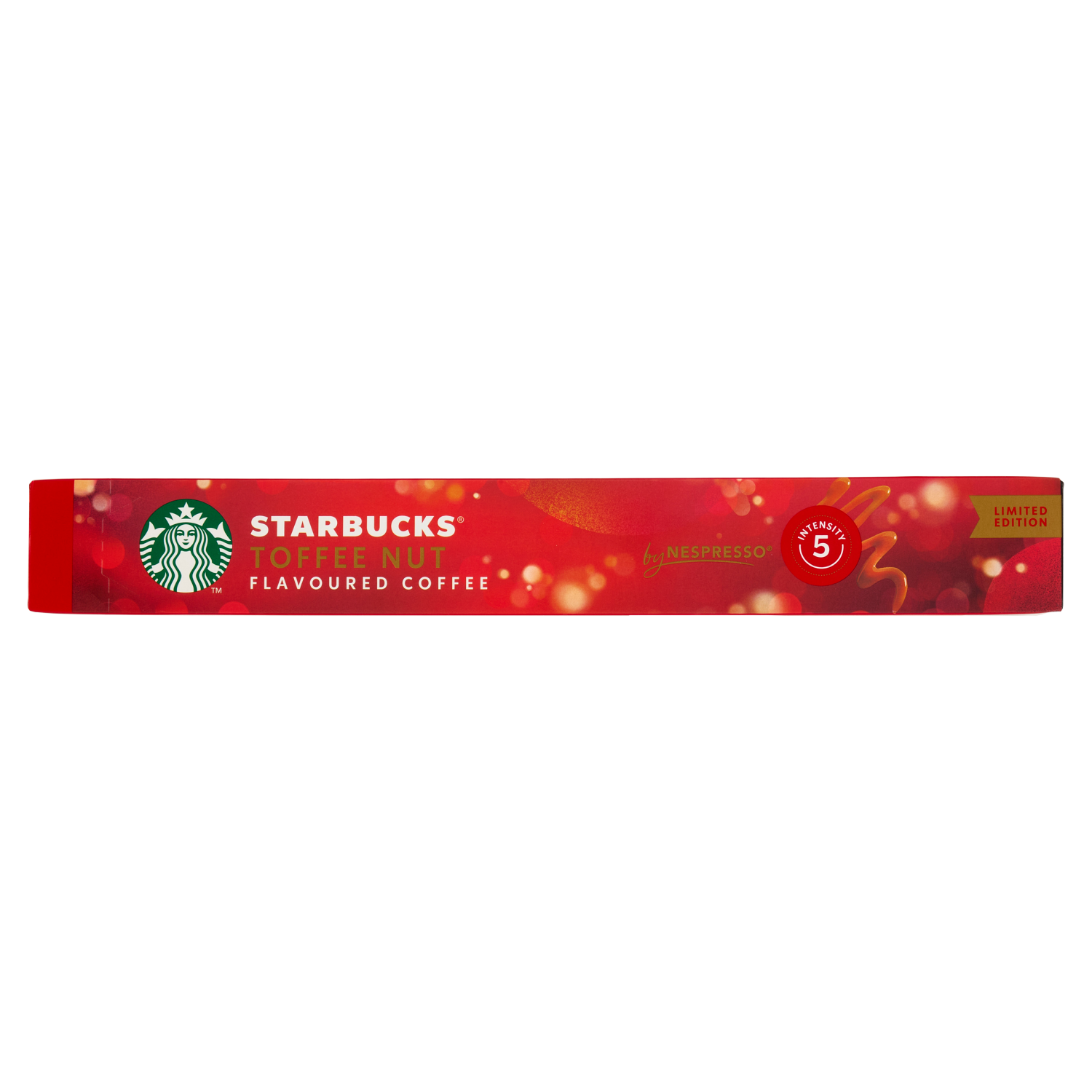 Ispirandoci al gusto iconico del caffè aromatizzato STARBUCKS Toffee Nut e utilizzando gli stessi chicchi di arabica di alta qualità delle nostre caffetterie, abbiamo realizzato per te questa bevanda stagionale con caffè e aroma, da preparare a casa. Le note dolci di caramello e di nocciola tostata ti faranno assaporare il gusto delle vacanze - gusta il tuo caffè e per un sapore ancora più di festa, aggiungi il tuo latte preferito.