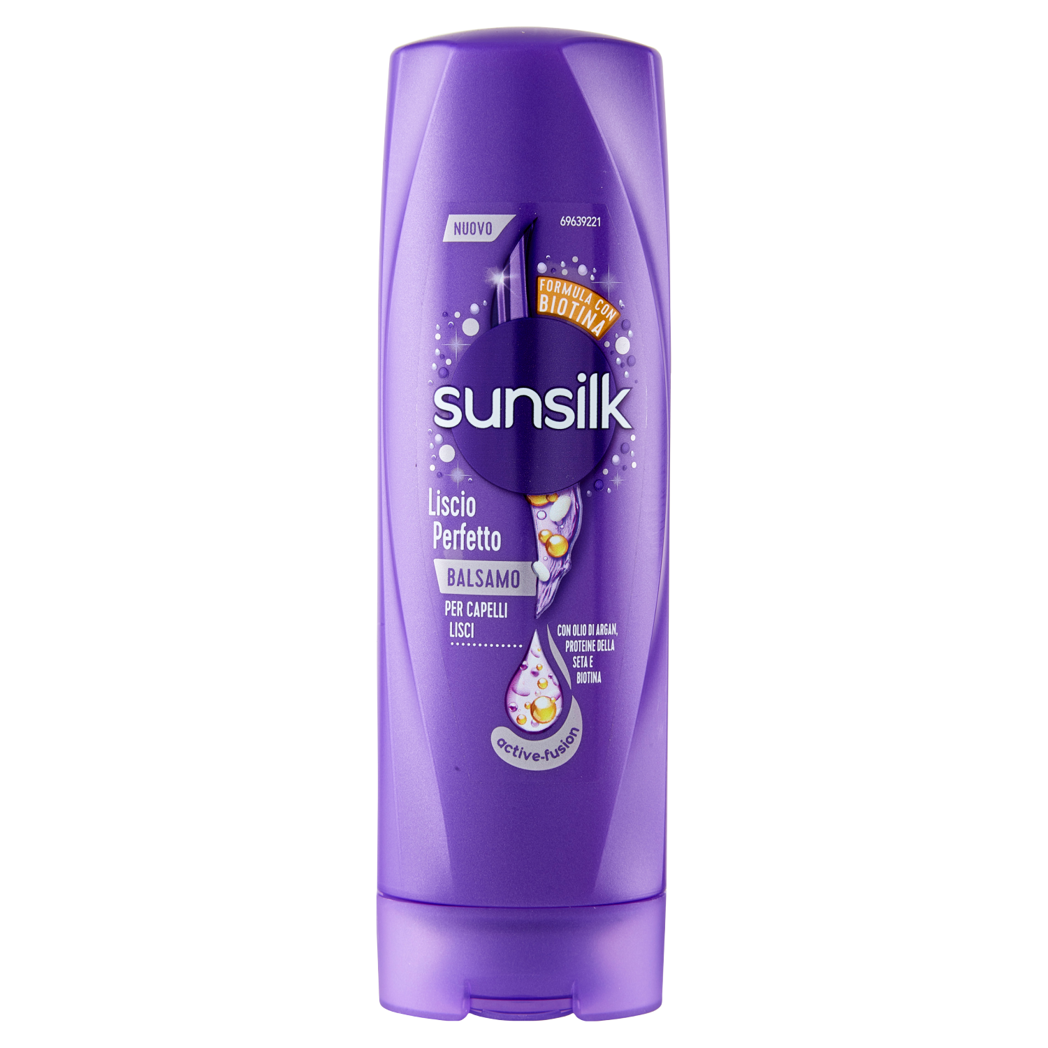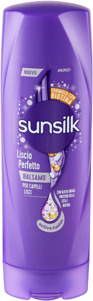 *Con l'uso combinato di shampoo e balsamo sunsilk Liscio Perfetto, rispetto ad un generico shampoo.