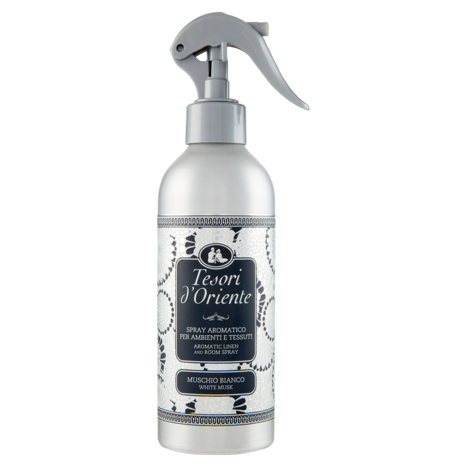 Questo Spray Aromatico profuma istantaneamente l'ambiente ed i tessuti d'arredo con le note intense ed inebrianti delle fragranze Tesori d'Oriente.