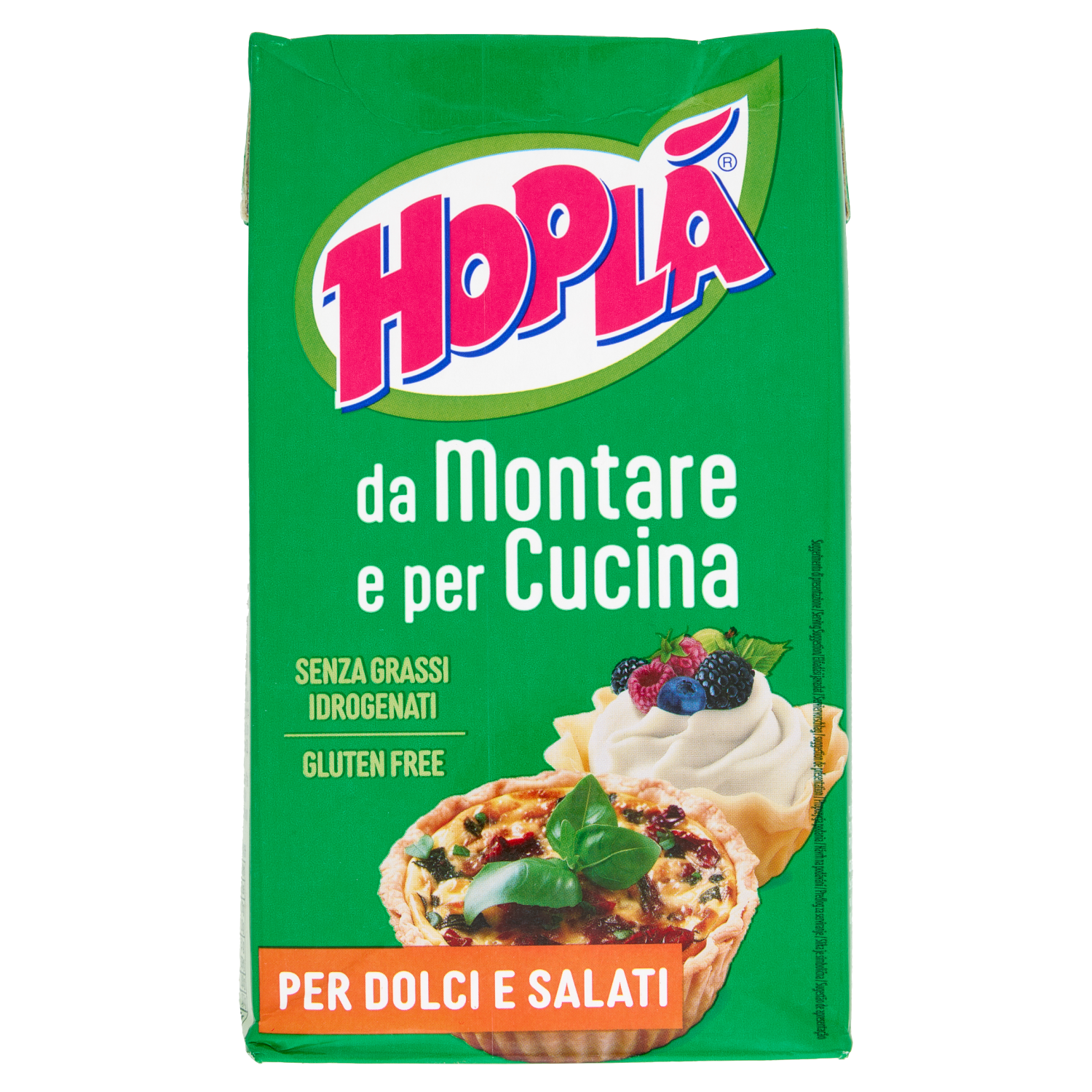 Hoplà può essere utilizzata in cucina come condimento leggero, in sostituzione della panna animale; in pasticceria e gelateria per farciture e decorazioni in sostituzione della panna per dolci. Per una migliore resa è opportuno che il prodotto, prima di essere montato, venga posto in frigorifero sino a raggiungere una temperatura tra +4°C e +6°C.