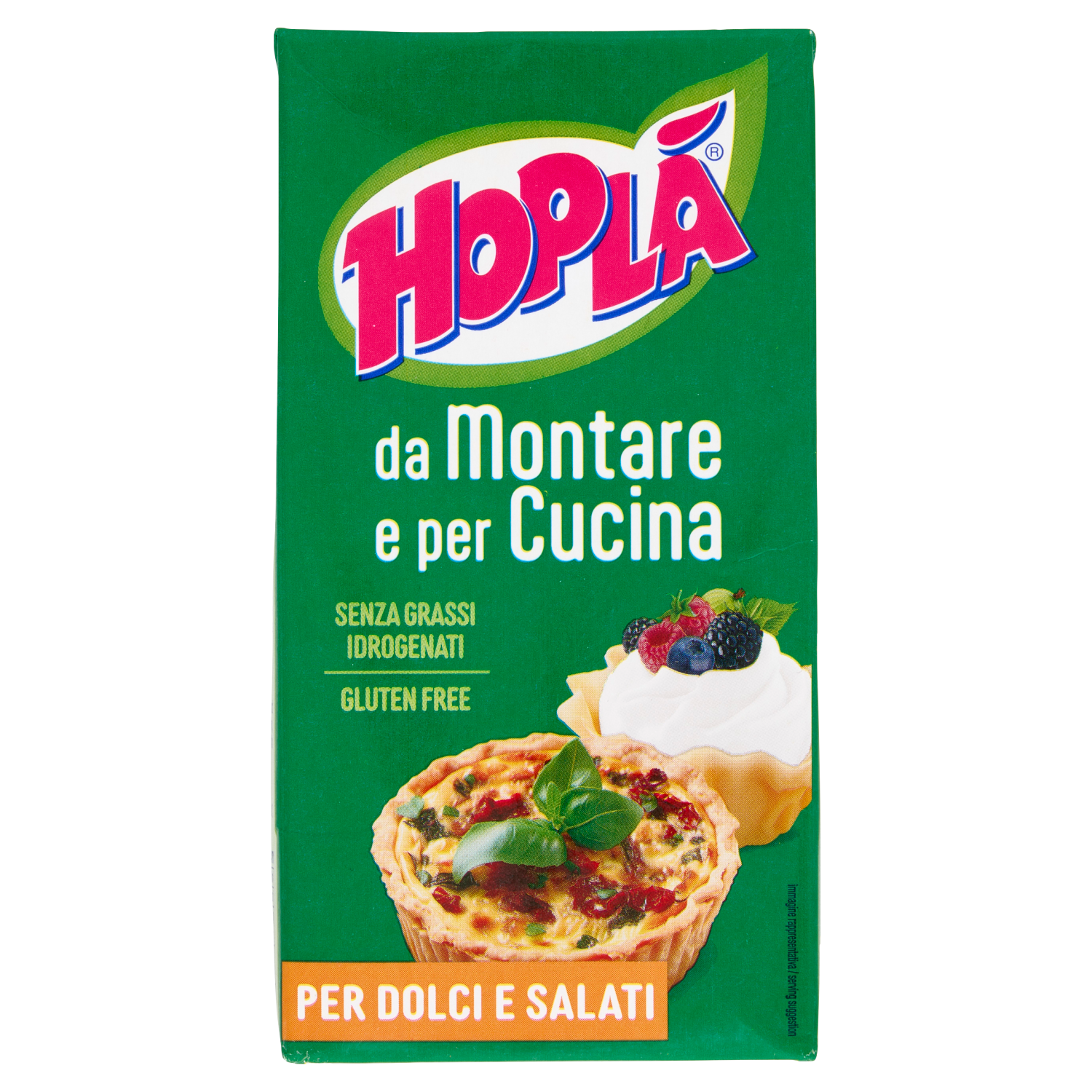 Hoplà può essere utilizzata in cucina come condimento leggero e in sostituzione della panna animale; in pasticceria e gelateria per farciture e decorazioni in sostituzione della panna per dolci. Per una migliore resa è opportuno che il prodotto, prima di essere montato, venga posto in frigorifero sino a raggiungere una temperatura di +4°C / +6°C.
