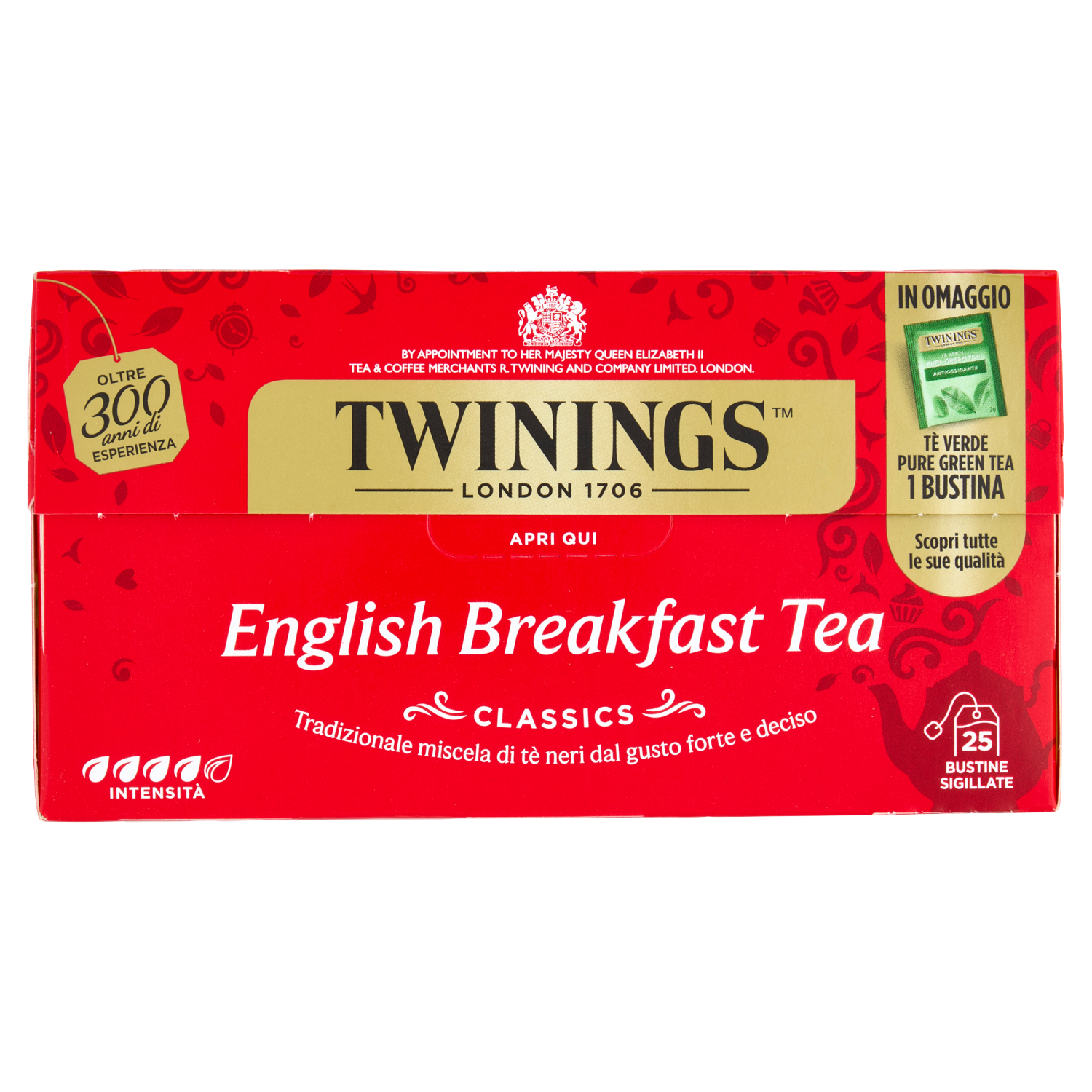 L'English Breakfast Tea è stato miscelato per la prima volta da Twinings nel decennio del 1930 per accompagnare la tradizionale e ricca colazione inglese. Realizzata scegliendo le migliori foglie di tè dai più pregiati giardini del mondo, questa miscela ha un sapore deciso e corposo.Ulteriore descrizione