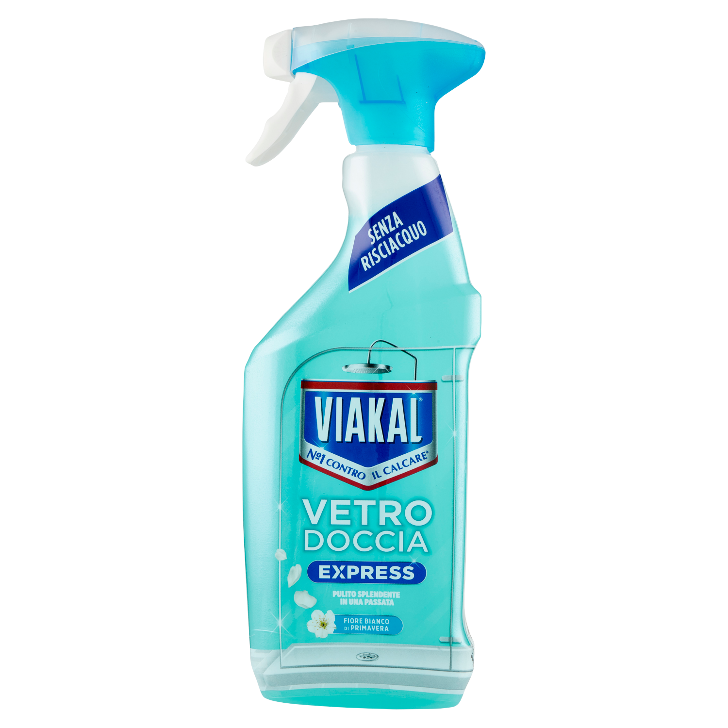 Viakal Vetro Doccia Express è l'alleato perfetto per mantenere il vetro della tua doccia pulito, libero da macchie d'acqua e sempre splendente. Si può usare ogni giorno su: