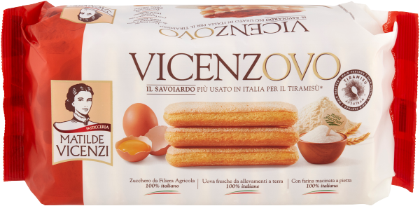 3. Bagnate velocemente i savoiardi Vicenzovo nel caffè, al quale avrete aggiunto il Marsala dolce, e adagiatene un primo strato in un vassoio, ricoprendolo con metà della crema al mascarpone.