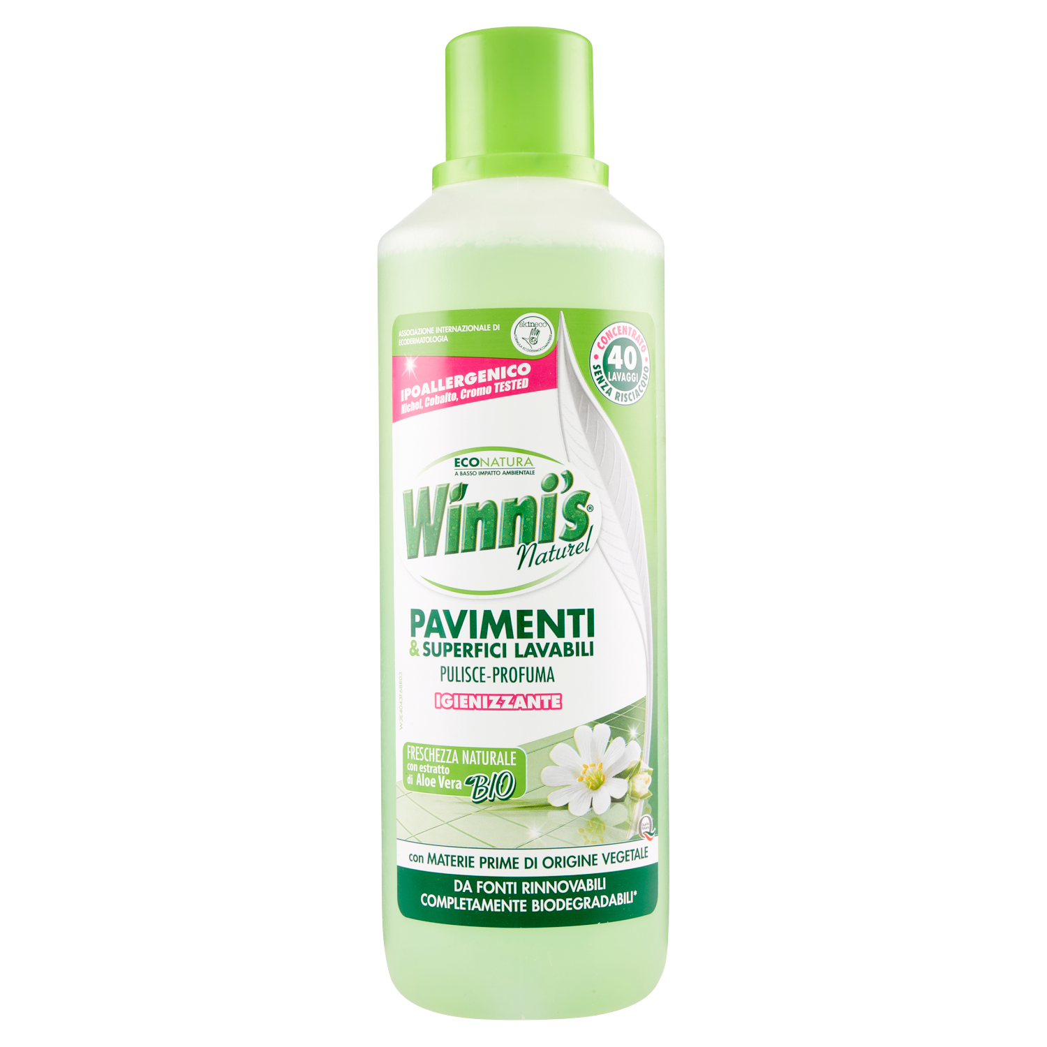 *I tensioattivi presenti nel prodotto sono facilmente, rapidamente e completamente biodegradabili (in base al regolamento 648/2004/CE). I tensioattivi di Winni's Pavimenti sono di origine vegetale e vengono trasformati dai microrganismi presenti nell'acqua in sostanze naturali (Info su www.winnis.it)