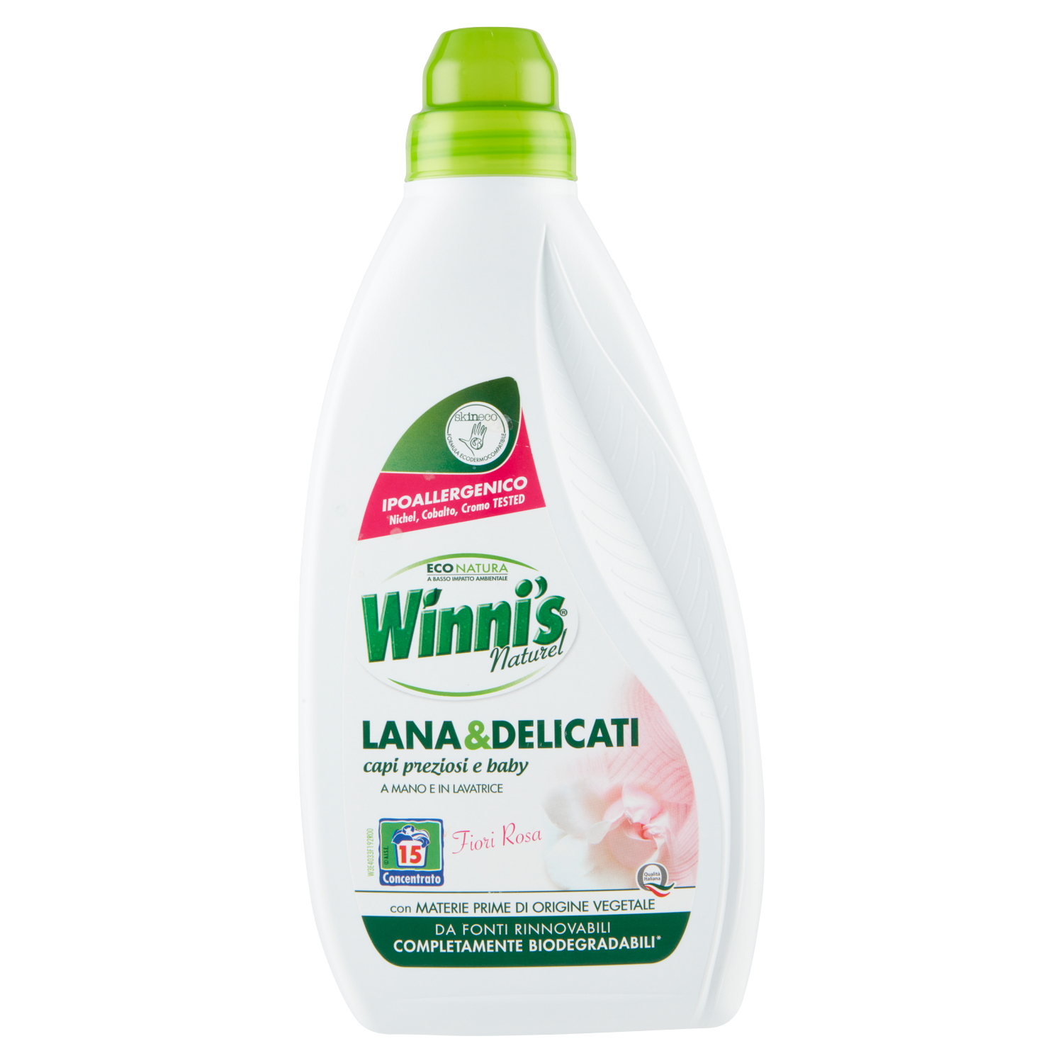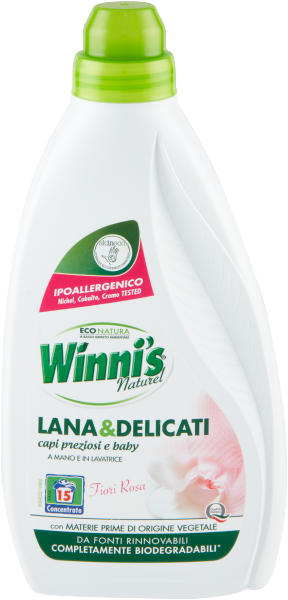 *I tensioattivi presenti nel prodotto sono facilmente, rapidamente e completamente biodegradabili (in base al regolamento 648/2004/CE). I tensioattivi di Winni's Lana & Delicati sono di origine vegetale e vengono trasformati dai microrganismi presenti nell'acqua in sostanze naturali (info su www.winnis.it)