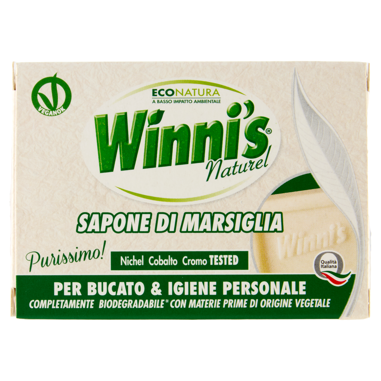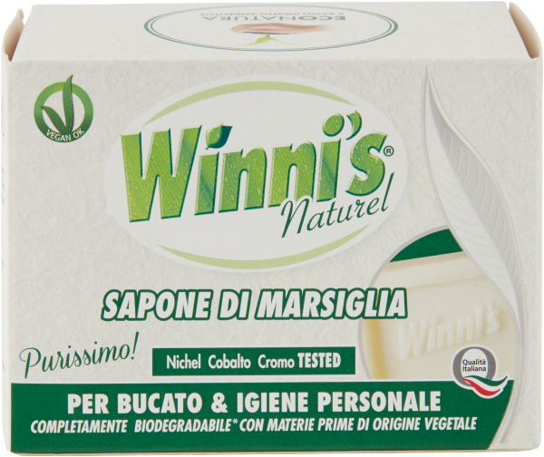 Winni's Sapone Marsiglia Purissimo contiene solo puro sapone vegetale. Grazie al suo elevato contenuto di acidi grassi vegetali è ideale per tutti i tipi di pelle, anche le più sensibili.
