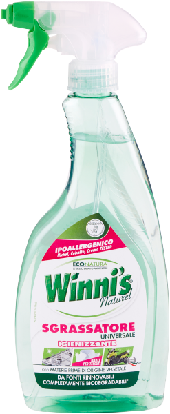 *I tensioattivi presenti nel prodotto sono facilmente, rapidamente e completamente biodegradabili (in base al regolamento 648/2004/CE). I tensioattivi di Winni's Sgrassatore sono di origine vegetale e vengono trasformati dai microrganismi presenti nell'acqua in sostanze naturali (Info su www.winnis.it)
